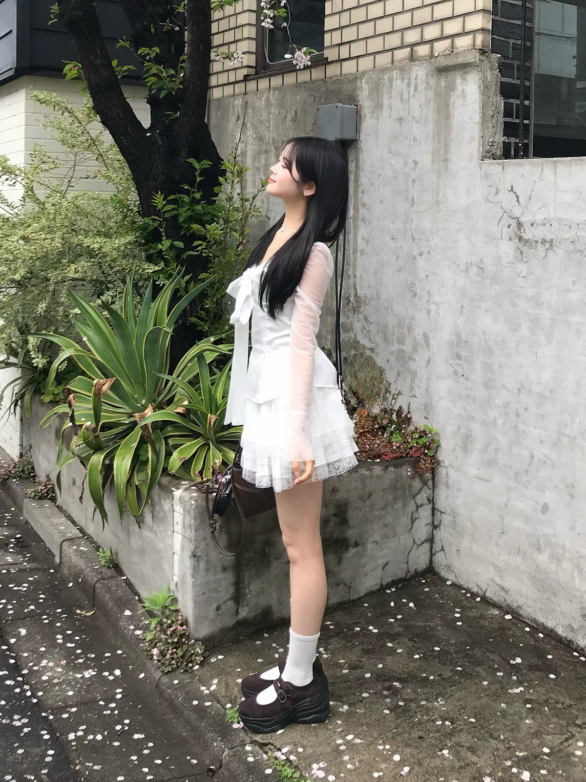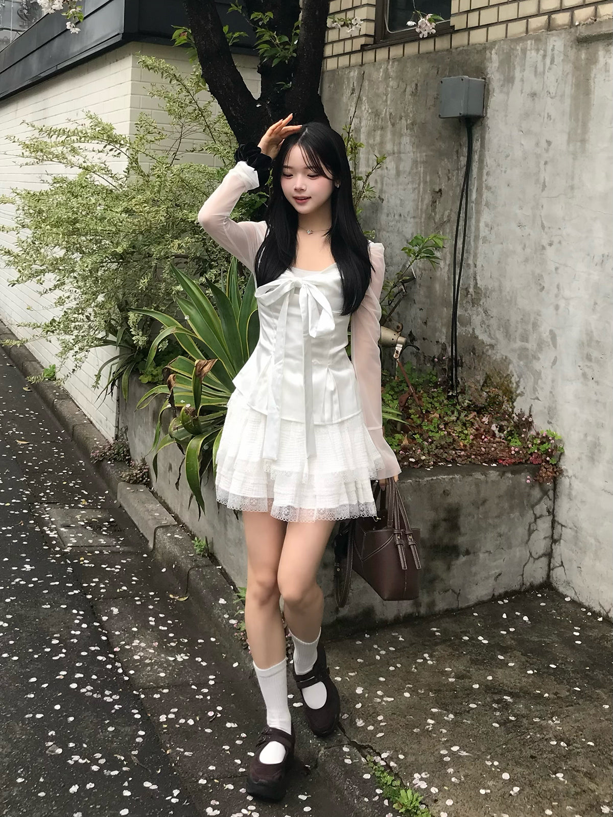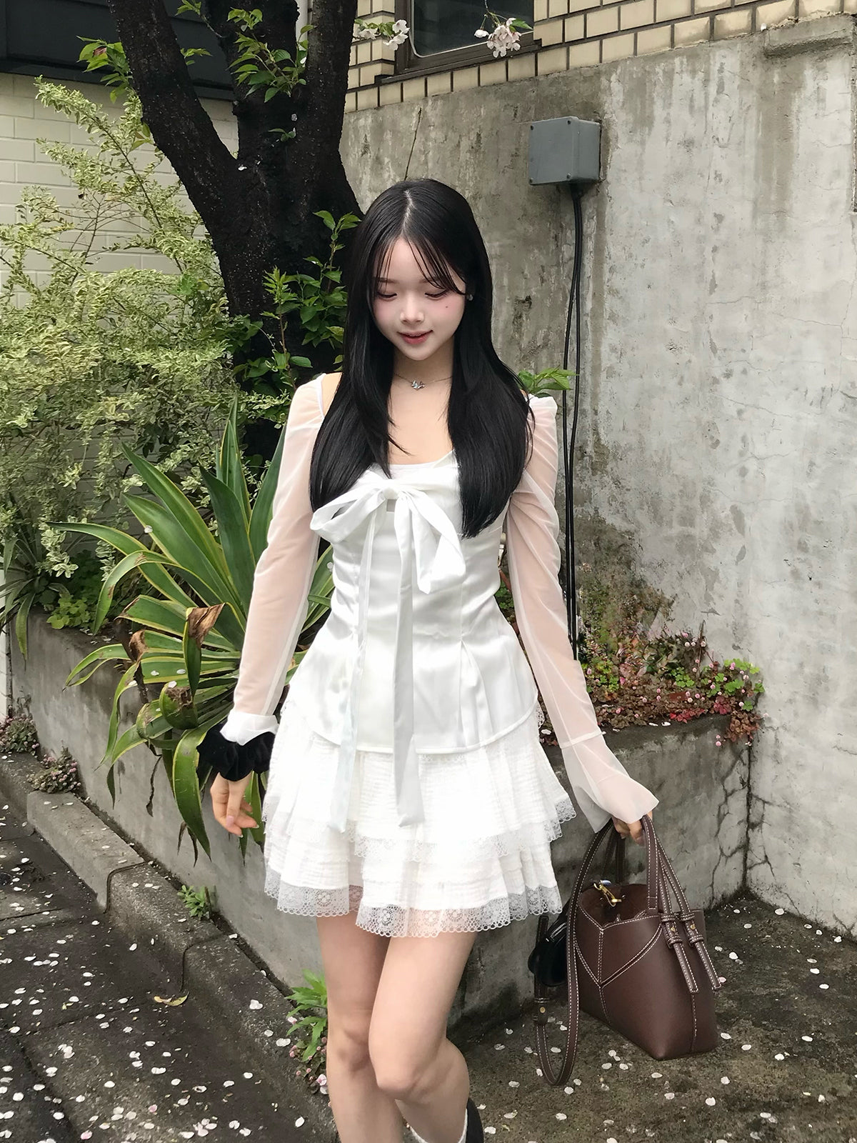 立体感のあるリボンディテールとタイデザインが、スタイリングに奥行きをプラス。