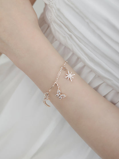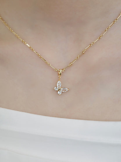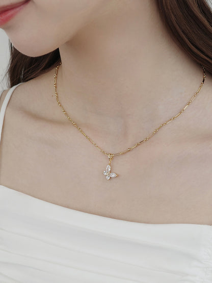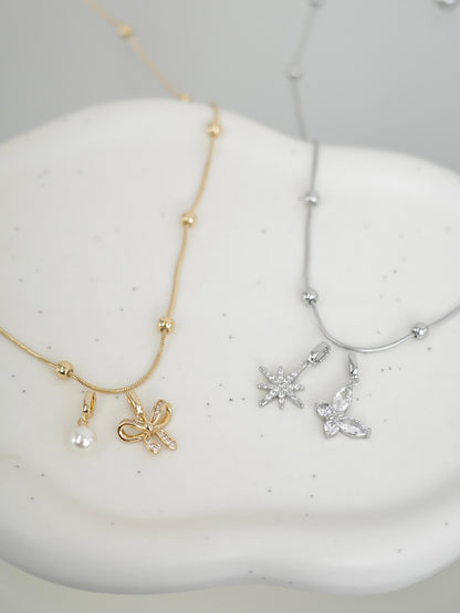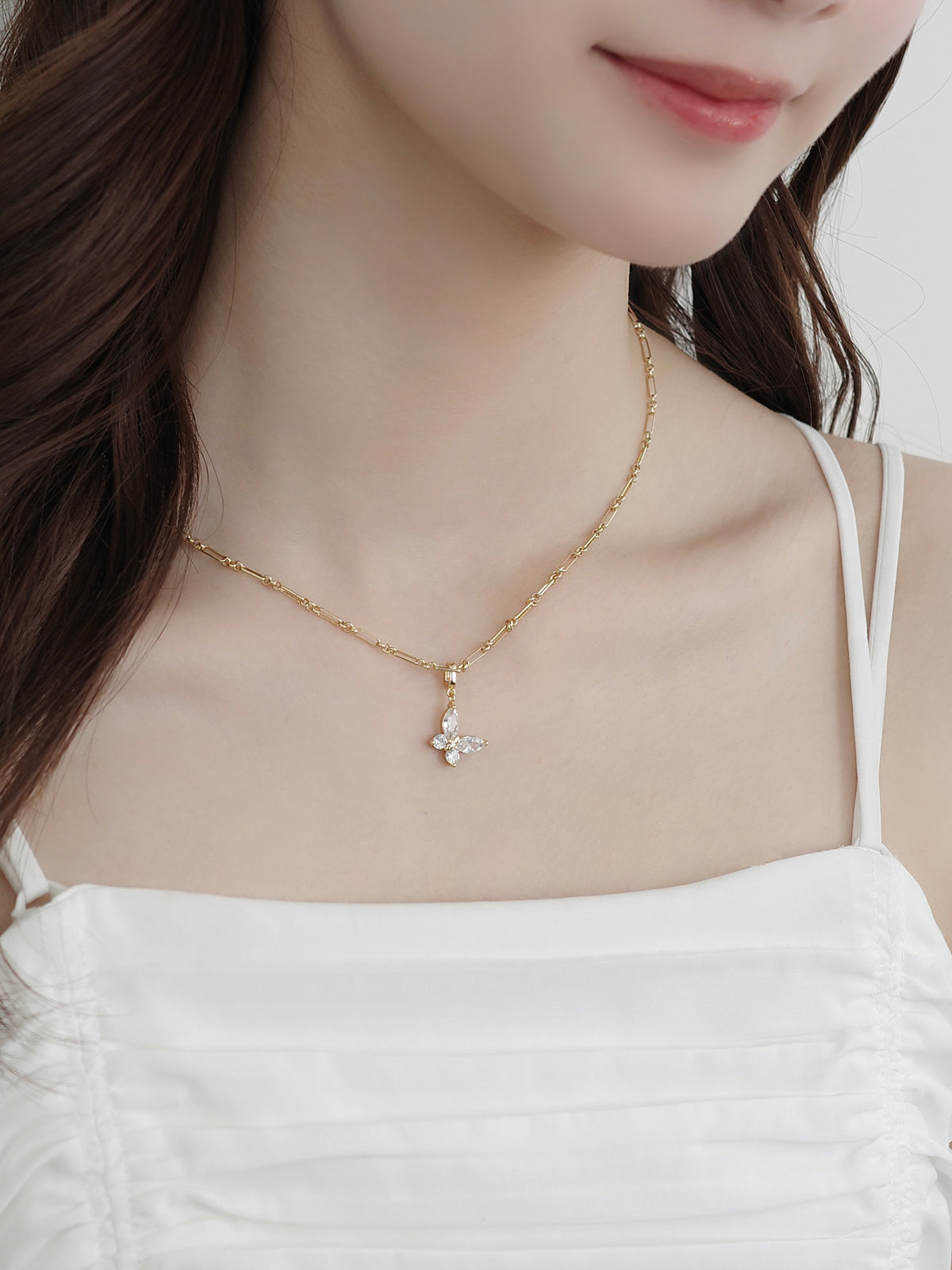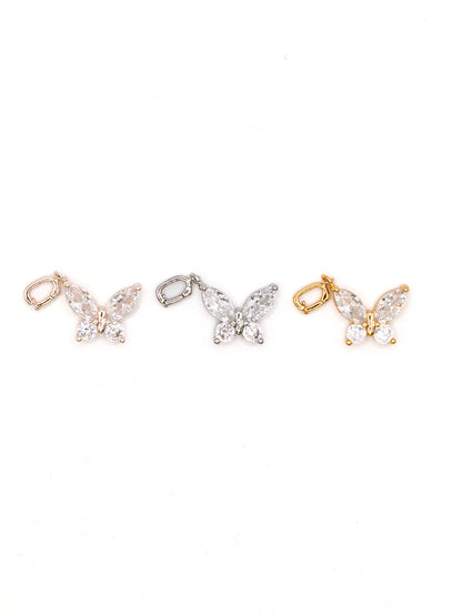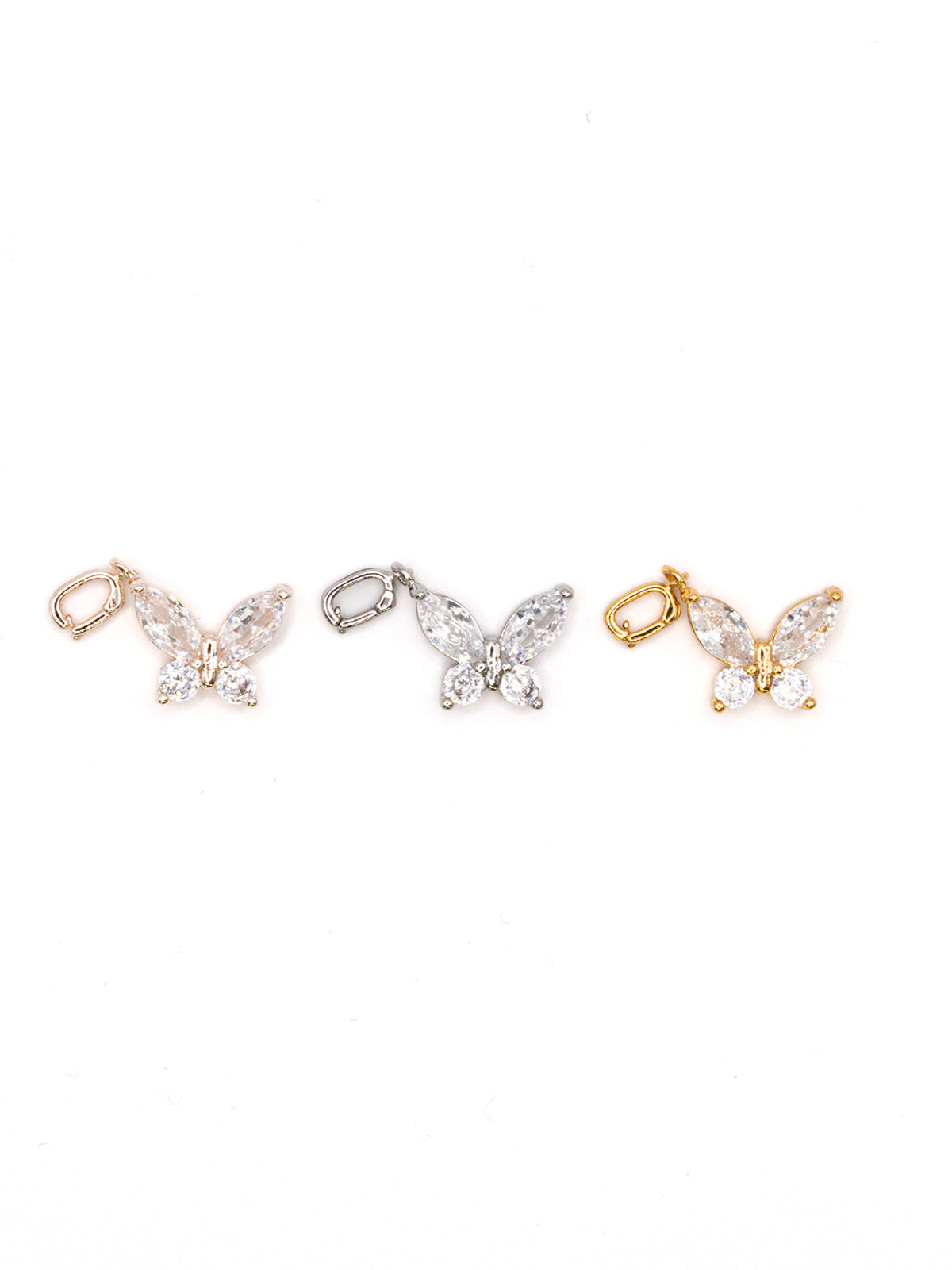大きめのジルコニアが輝きを放ち、愛らしいシルエットのバタフライチャーム。