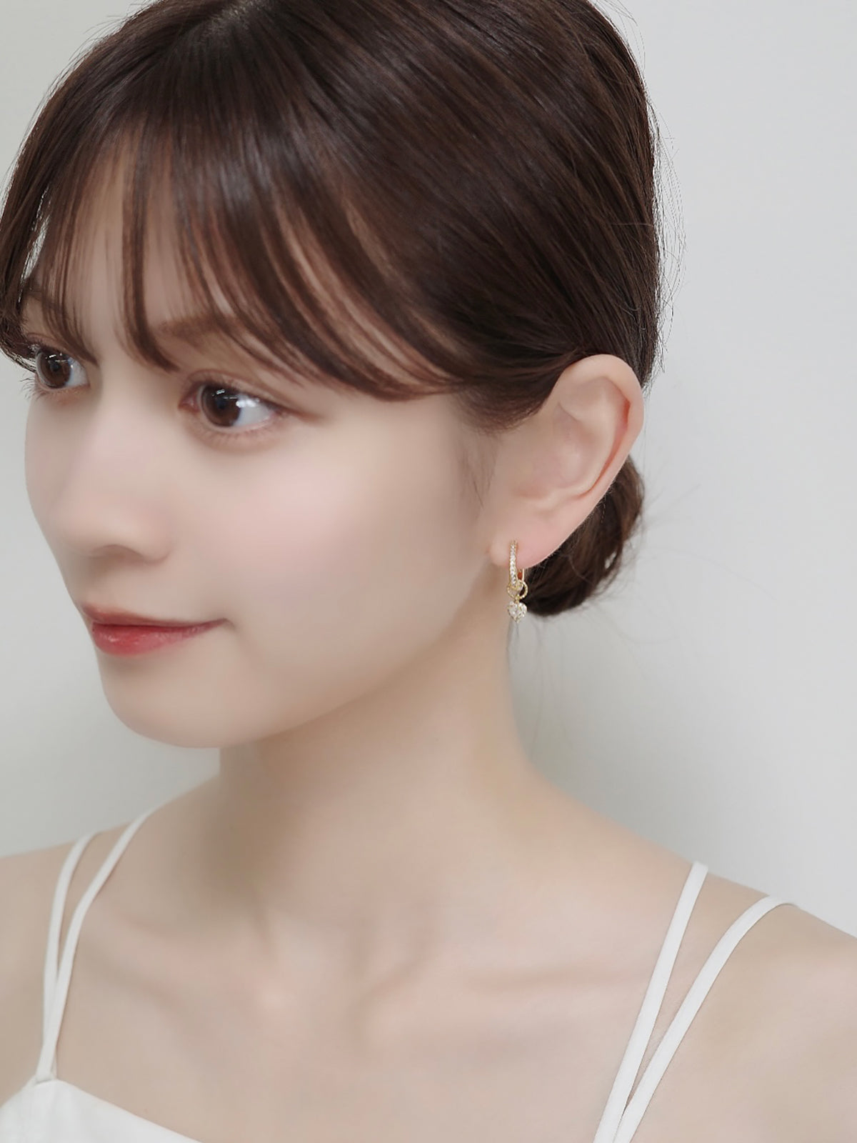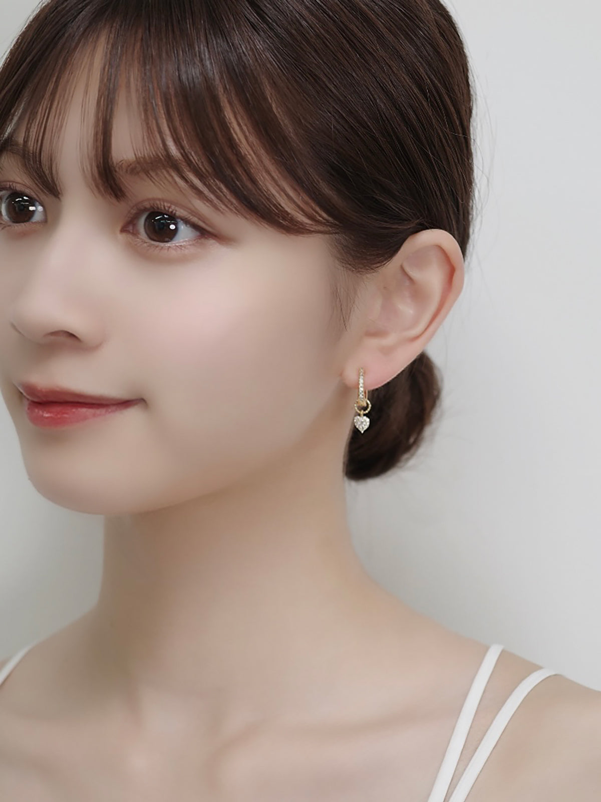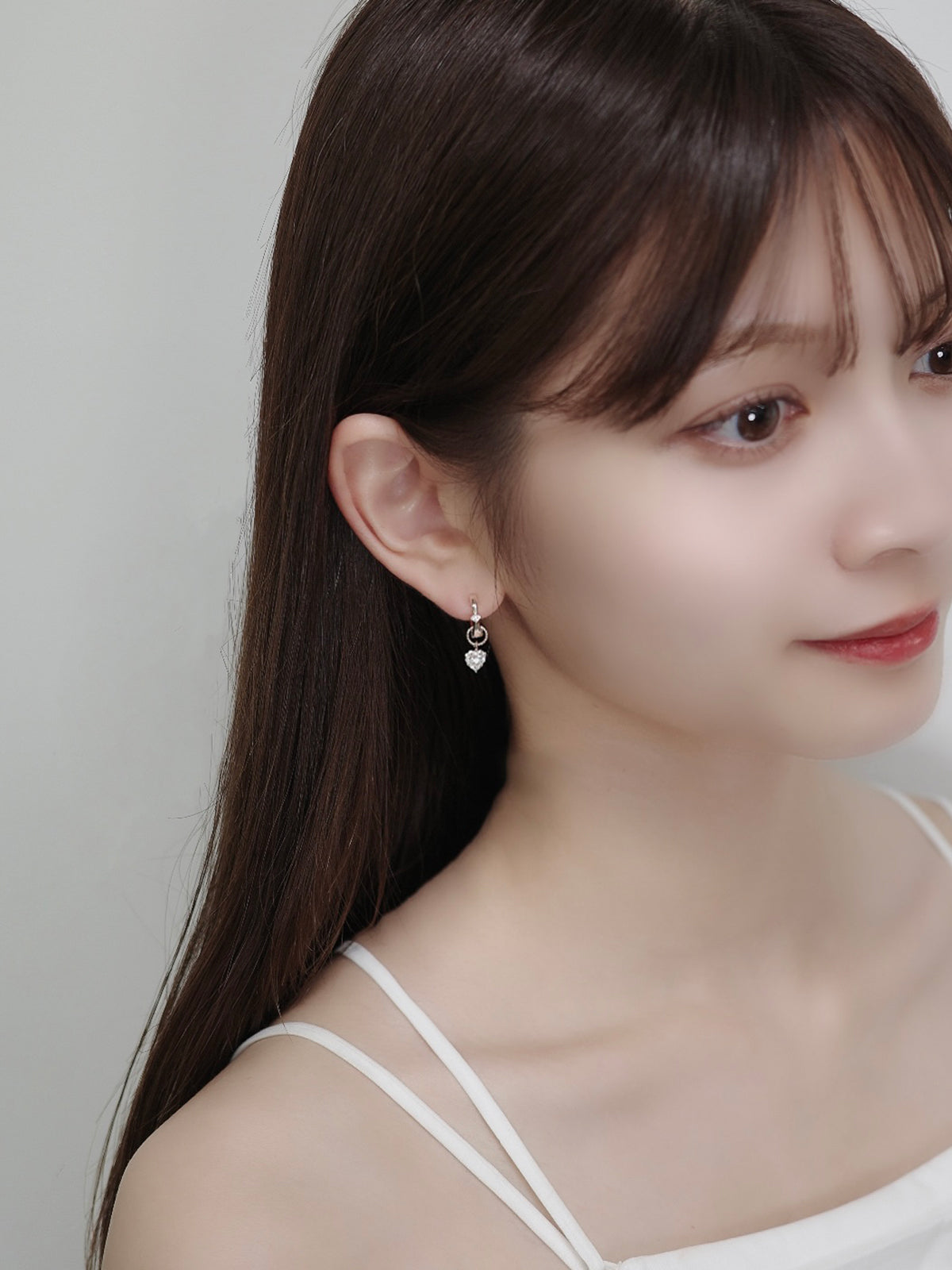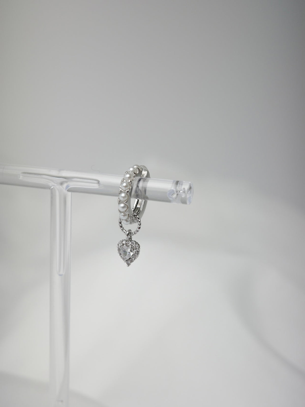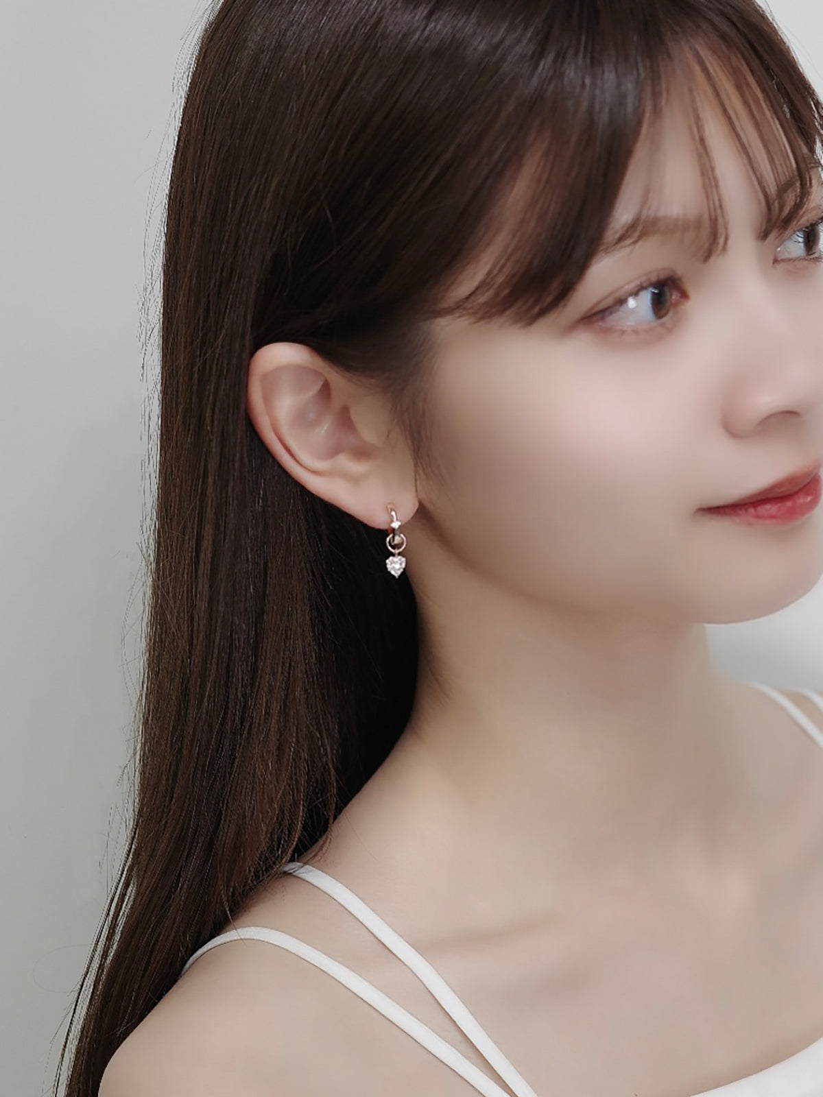 ハートのジルコニアを中心に、丸のジルコニアが囲むデザインで、立体感のある華やかなきらめきを演出。