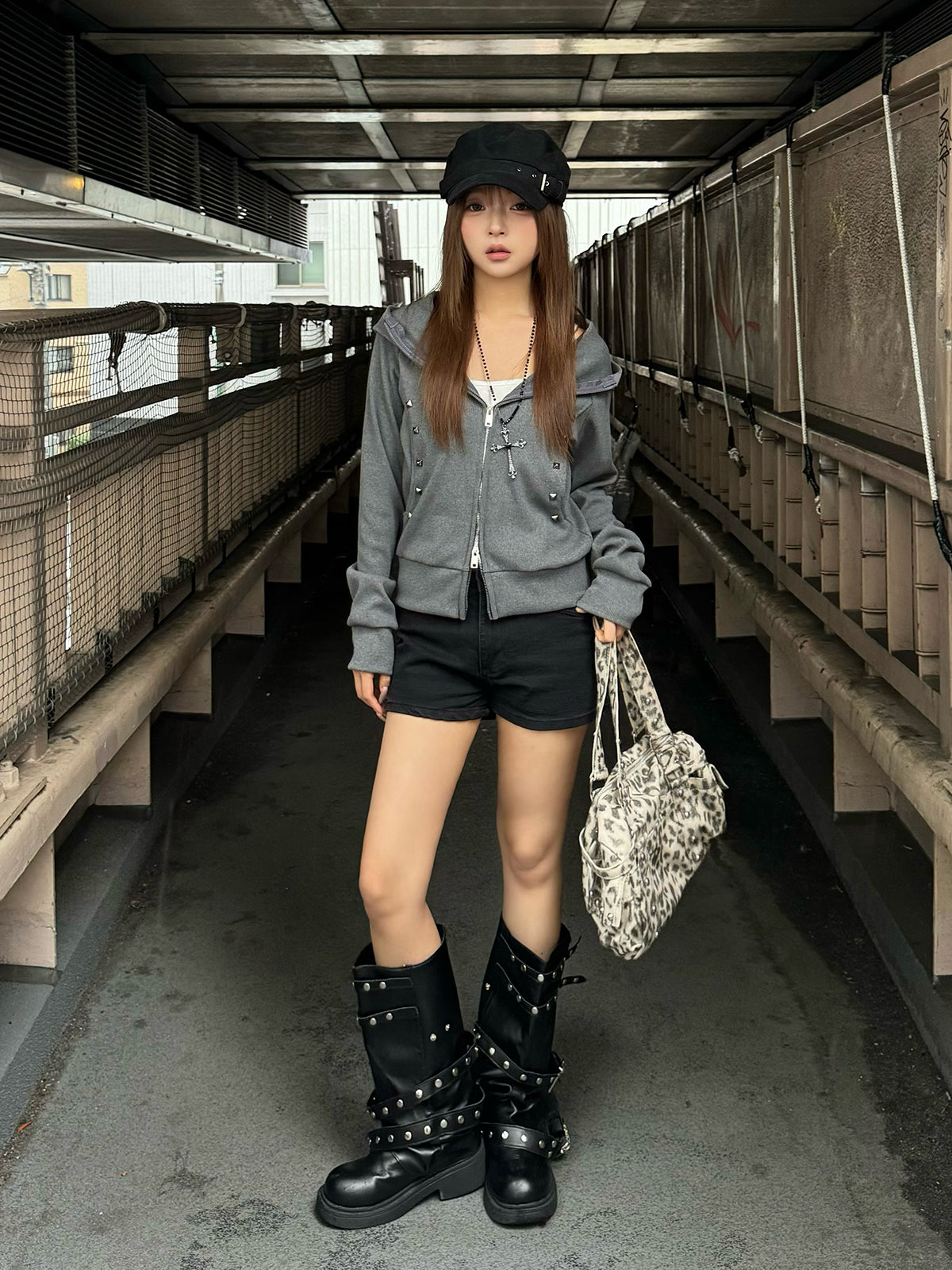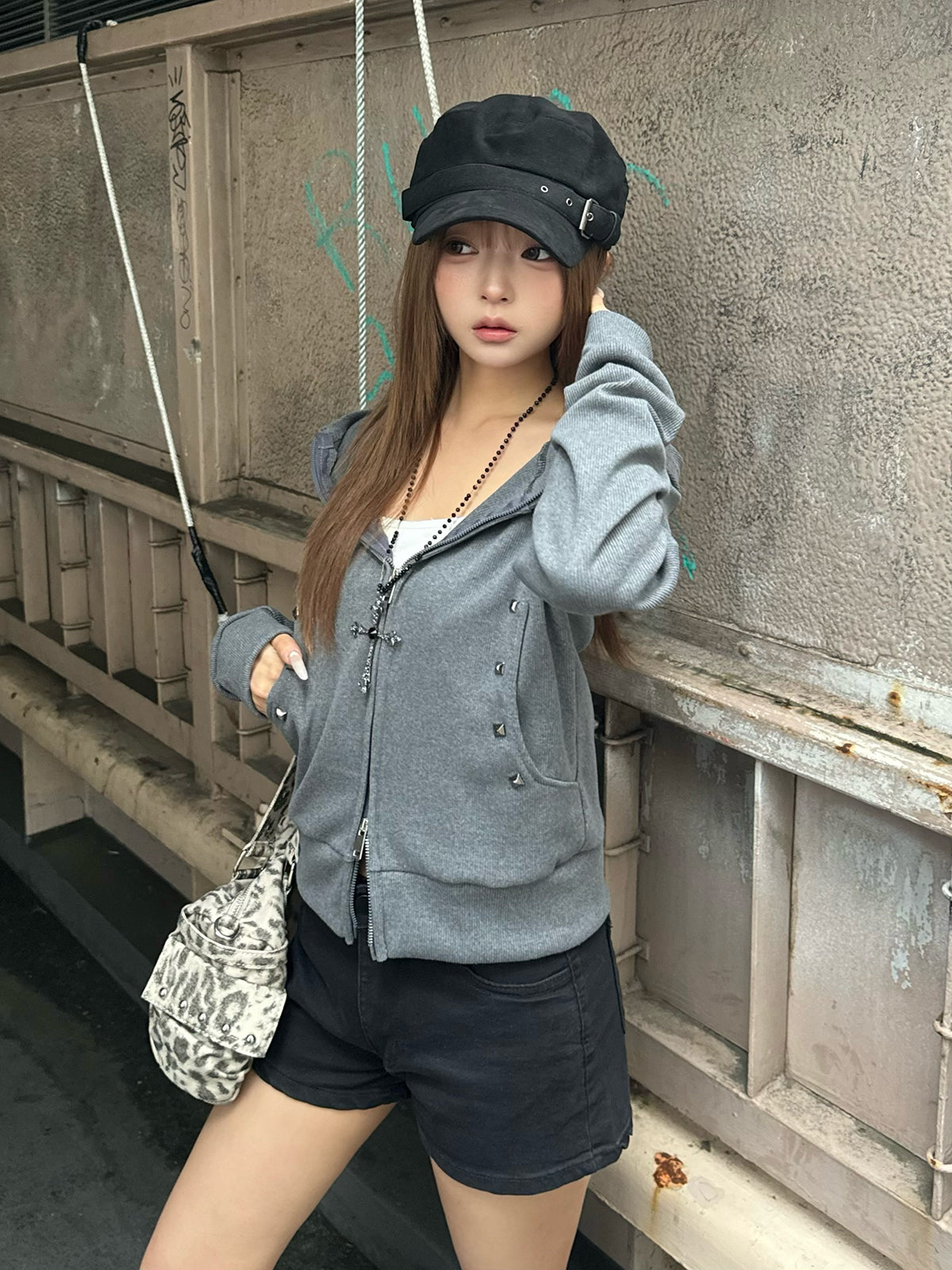 フロントにはスタッズをあしらい、シンプルな中にさりげないエッジをプラスしています。