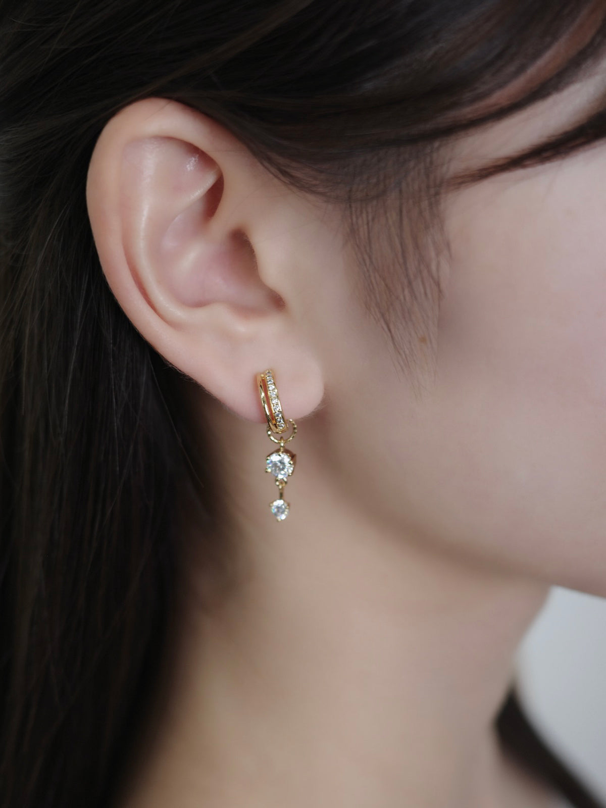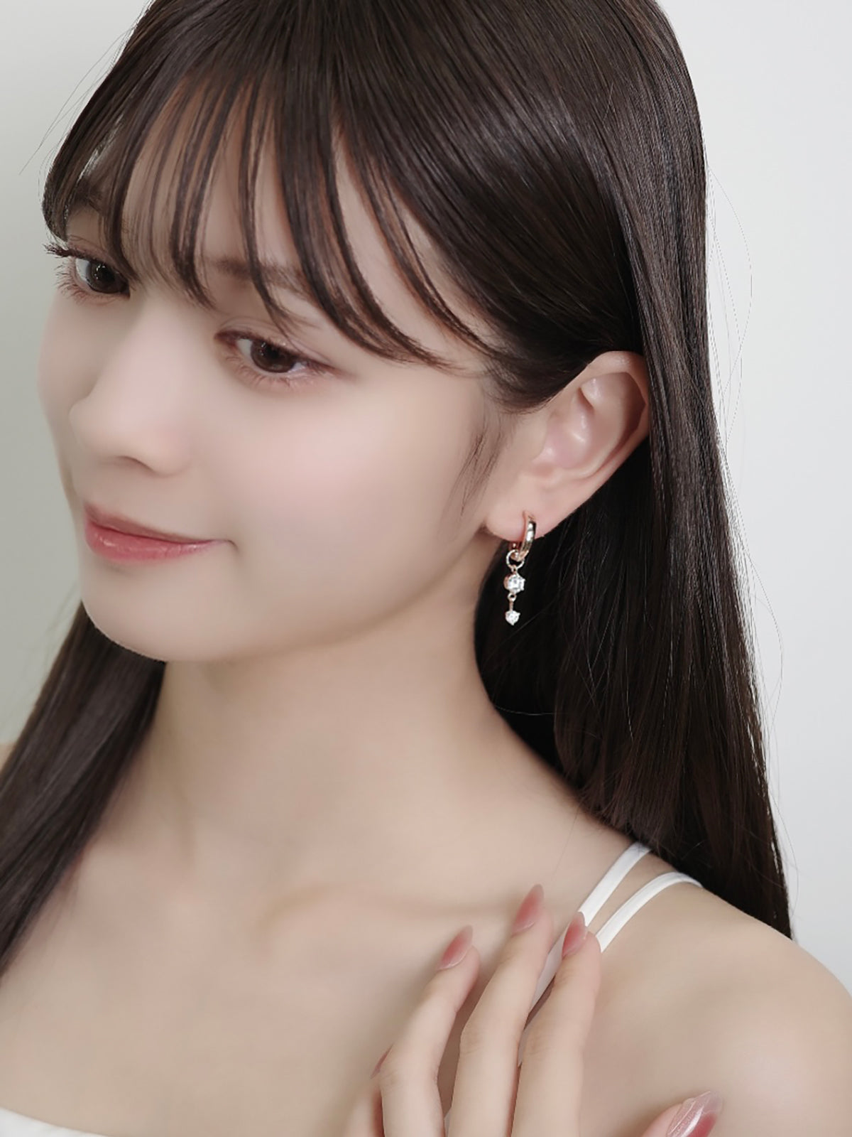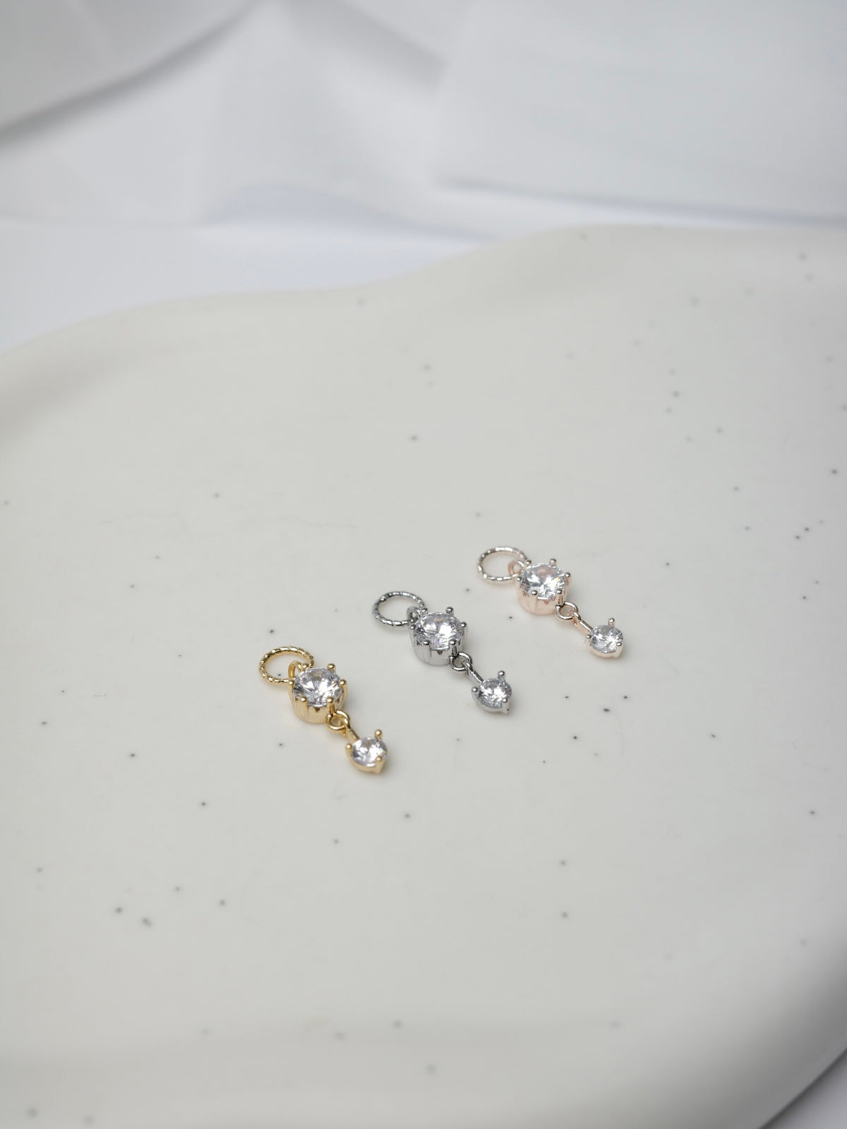 チャームが揺れるたび、ジルコニアのきらめきが耳元に表情を添えてくれるデザイン。