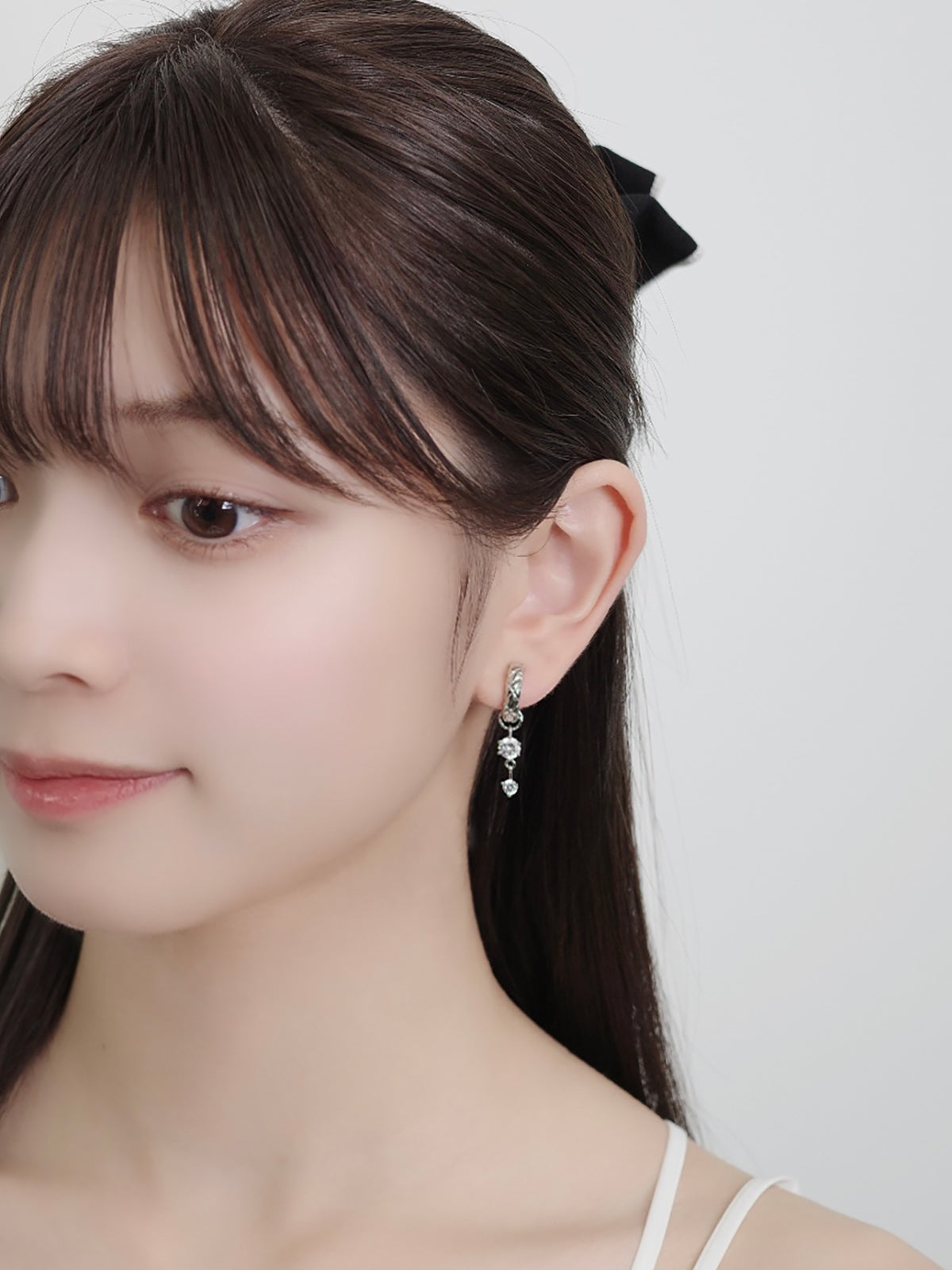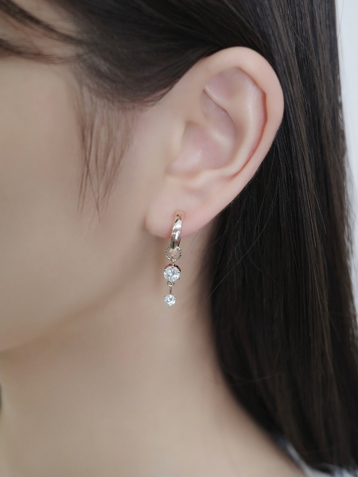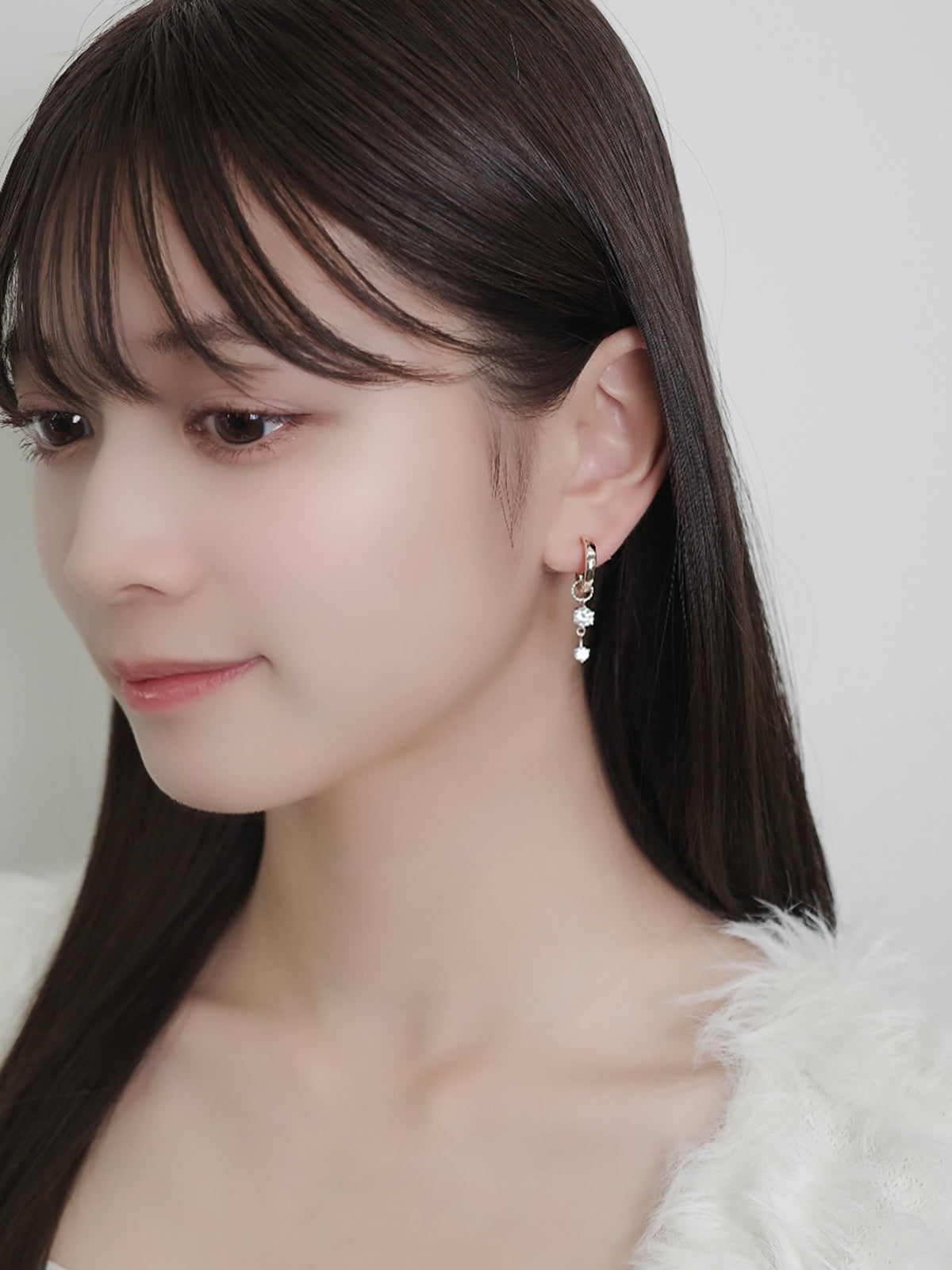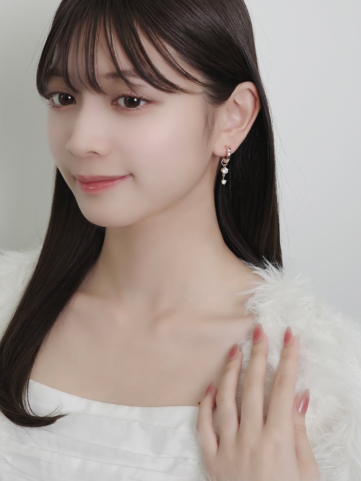 チャームが揺れるたび、ジルコニアのきらめきが耳元に表情を添えてくれるデザイン。