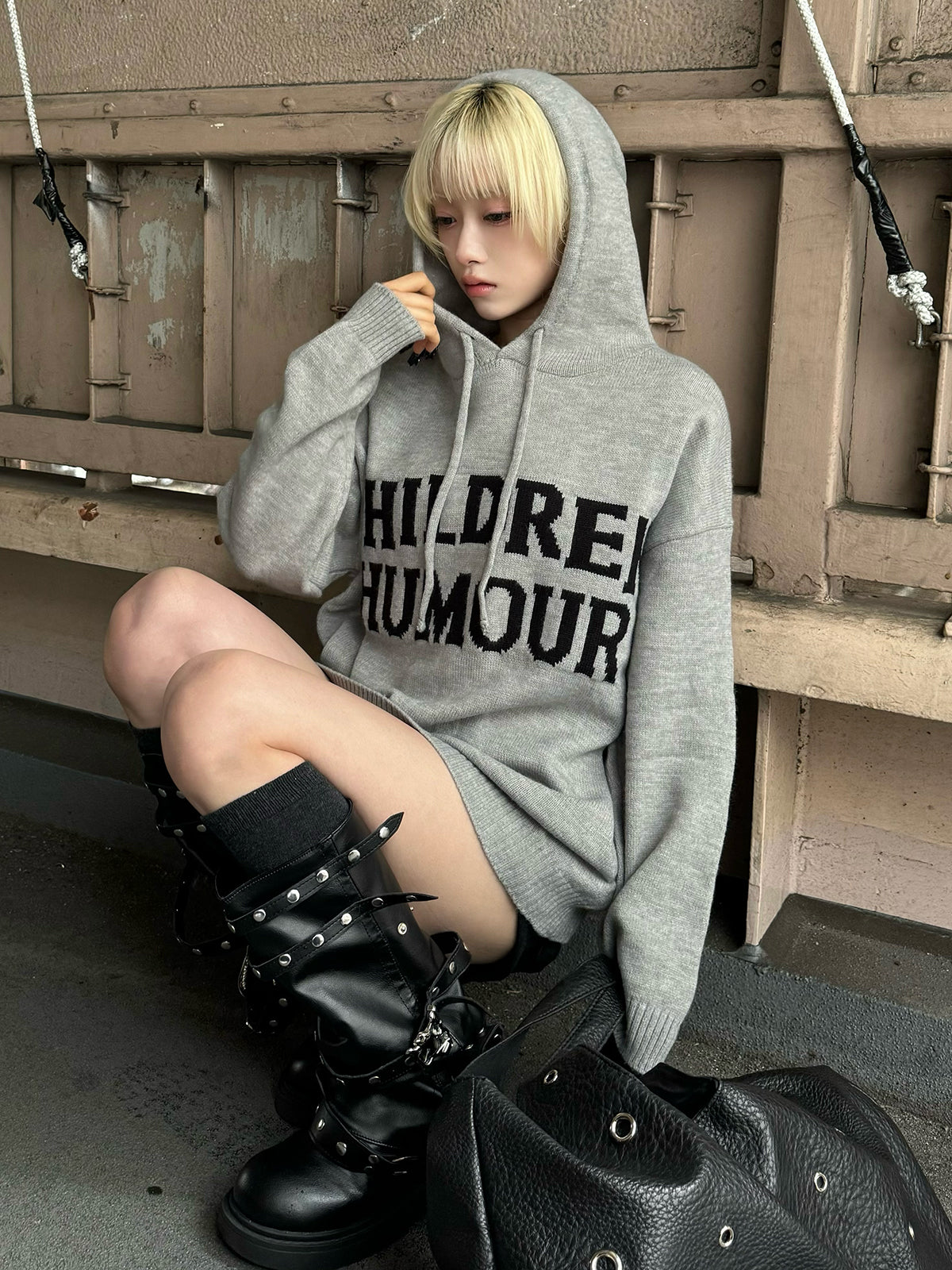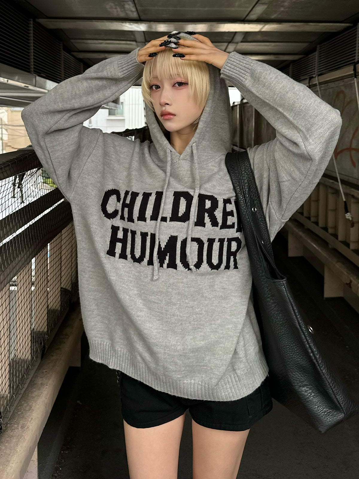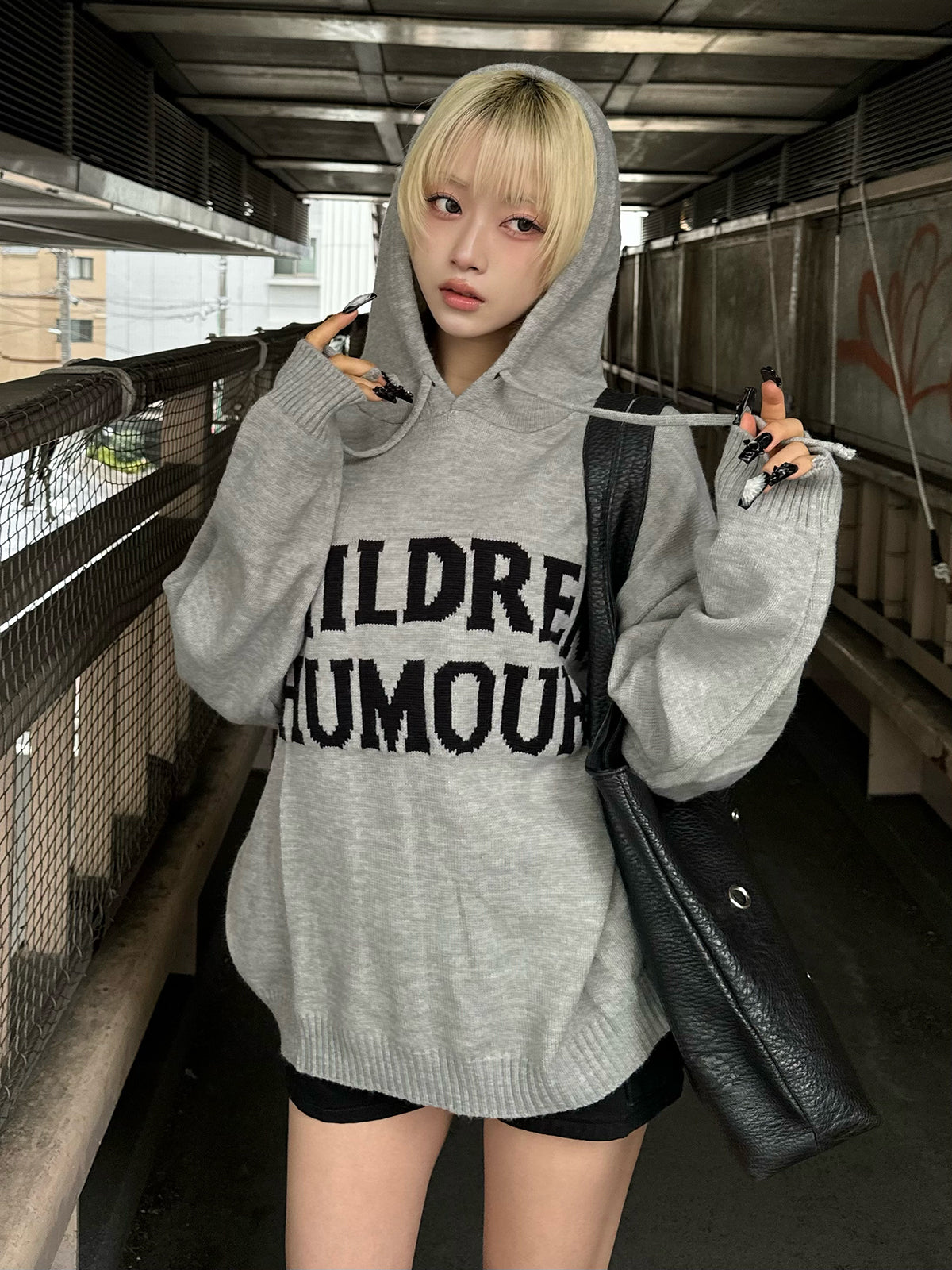 宽松的轮廓和带帽设计,轻松穿着的连帽针织衫。