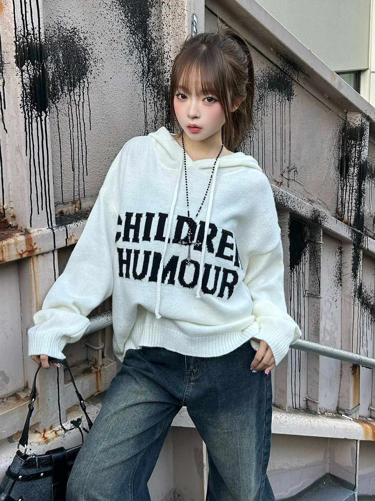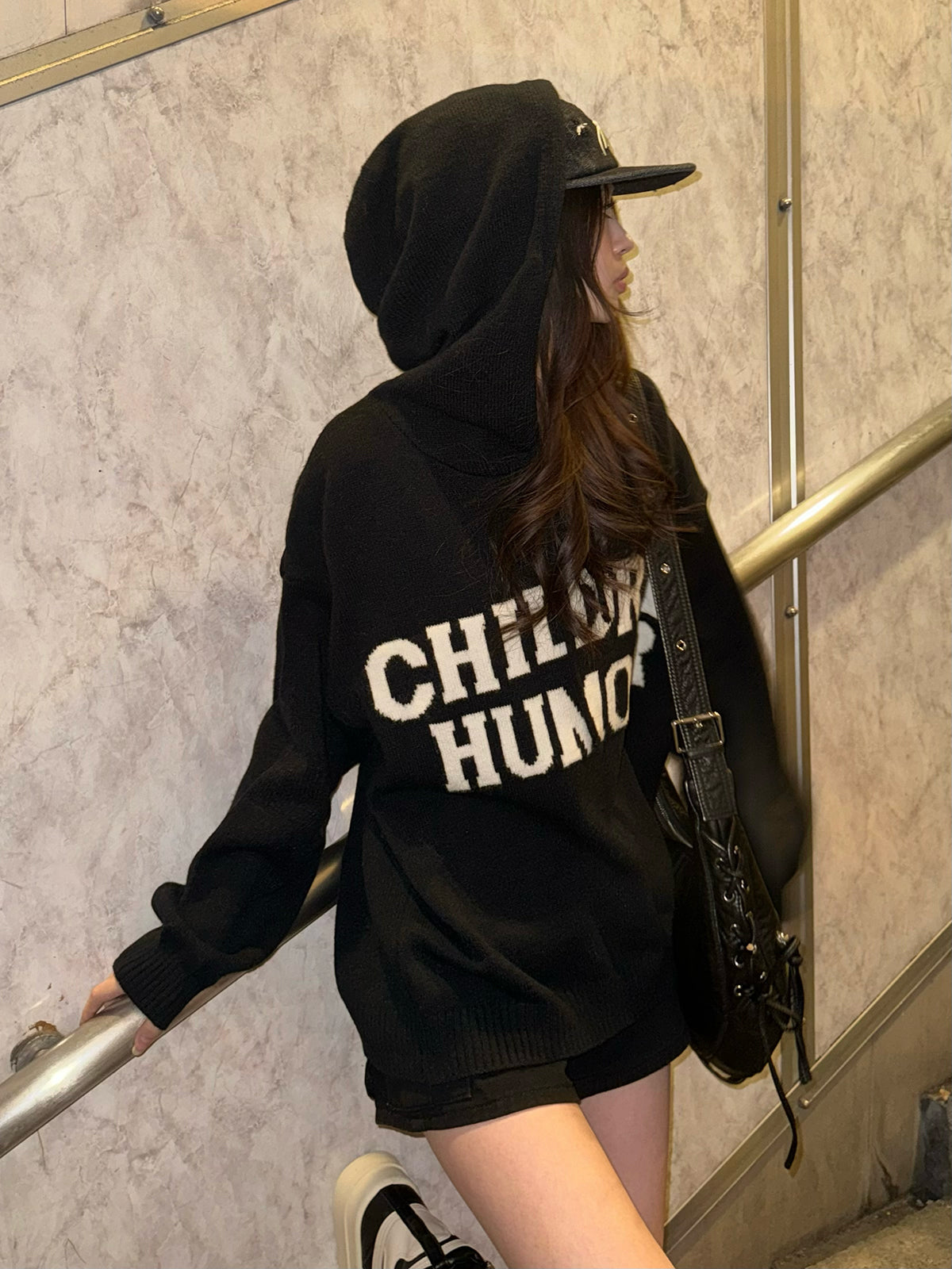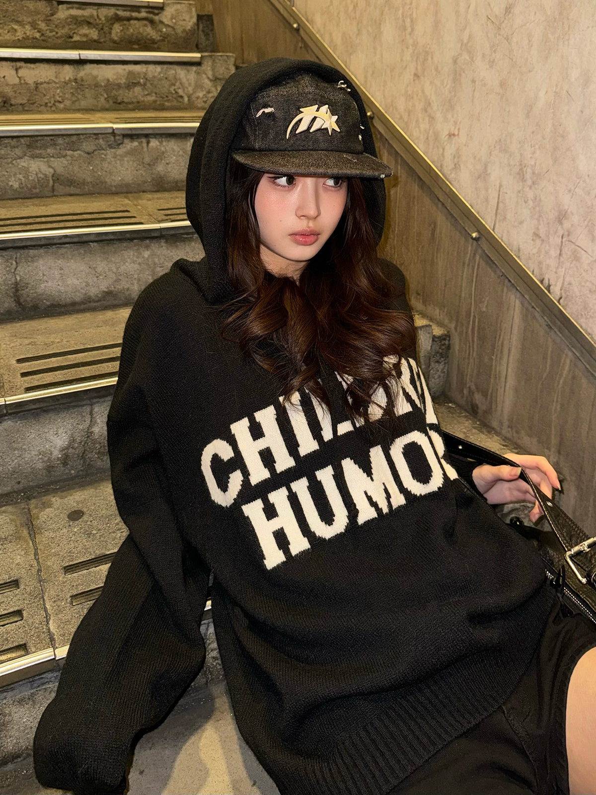 宽松的轮廓和带帽设计,轻松穿着的连帽针织衫。