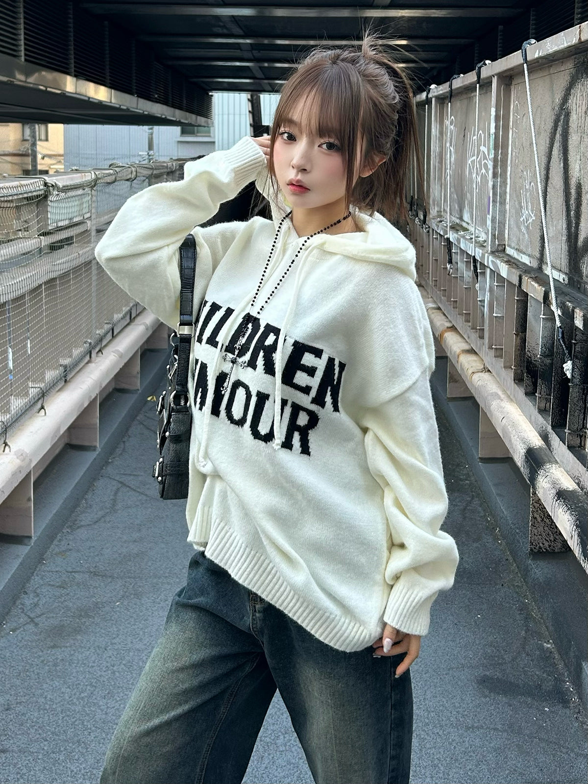 大号字母标志成为搭配的主角,单穿一件即可完成造型。1件即可轻松搭配。