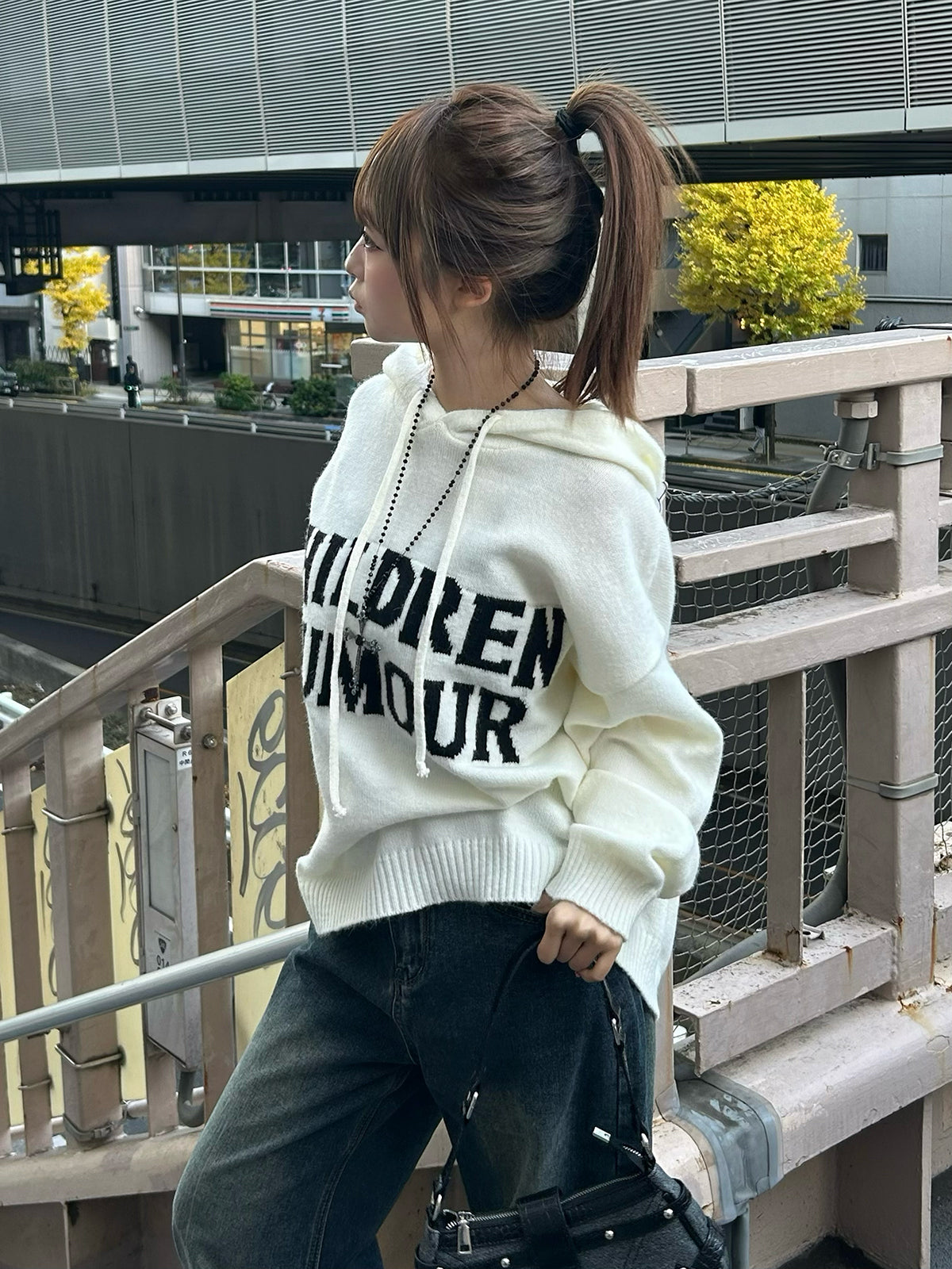 字母标志连帽针织衫