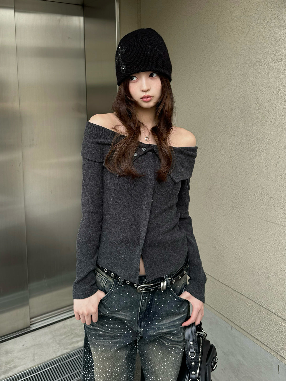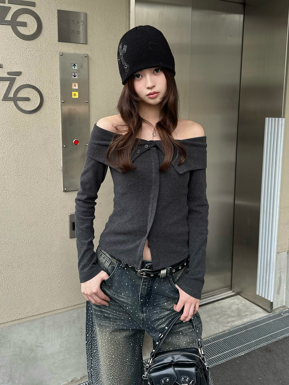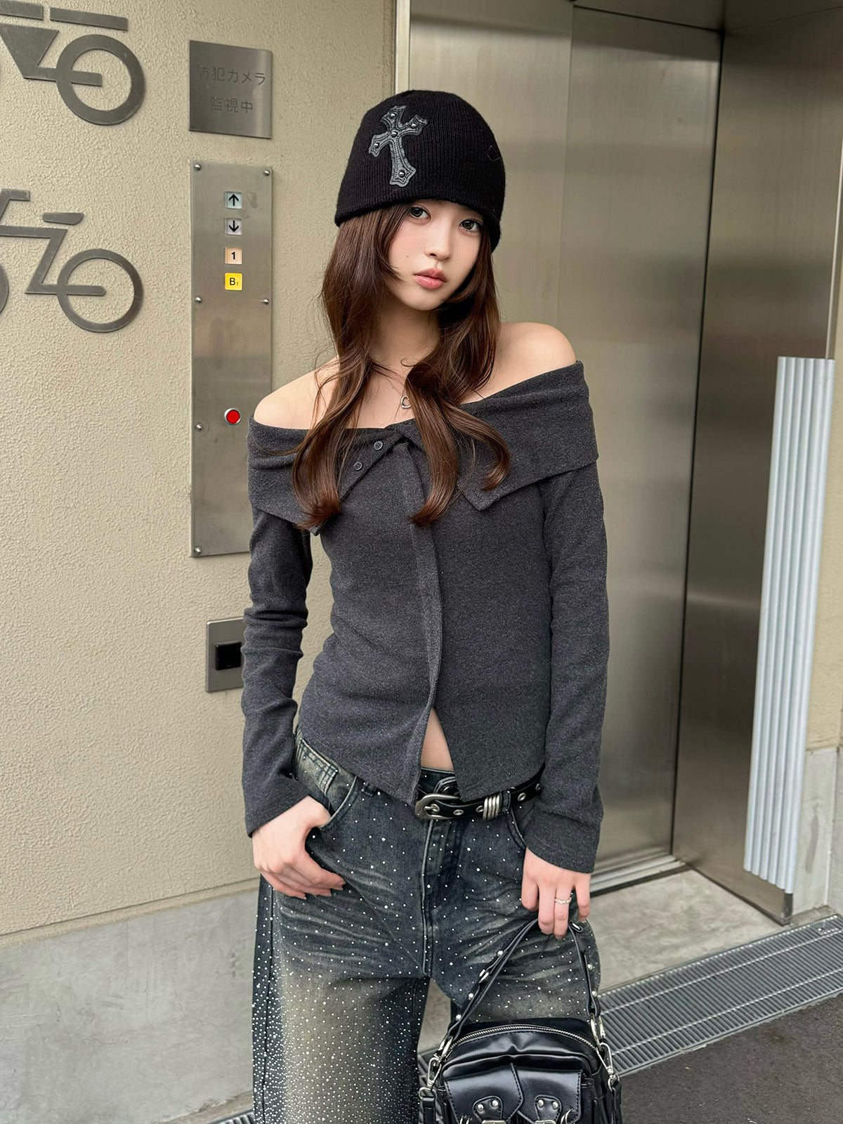 适度露出肩部的露肩设计,打造轻松随性的风格。