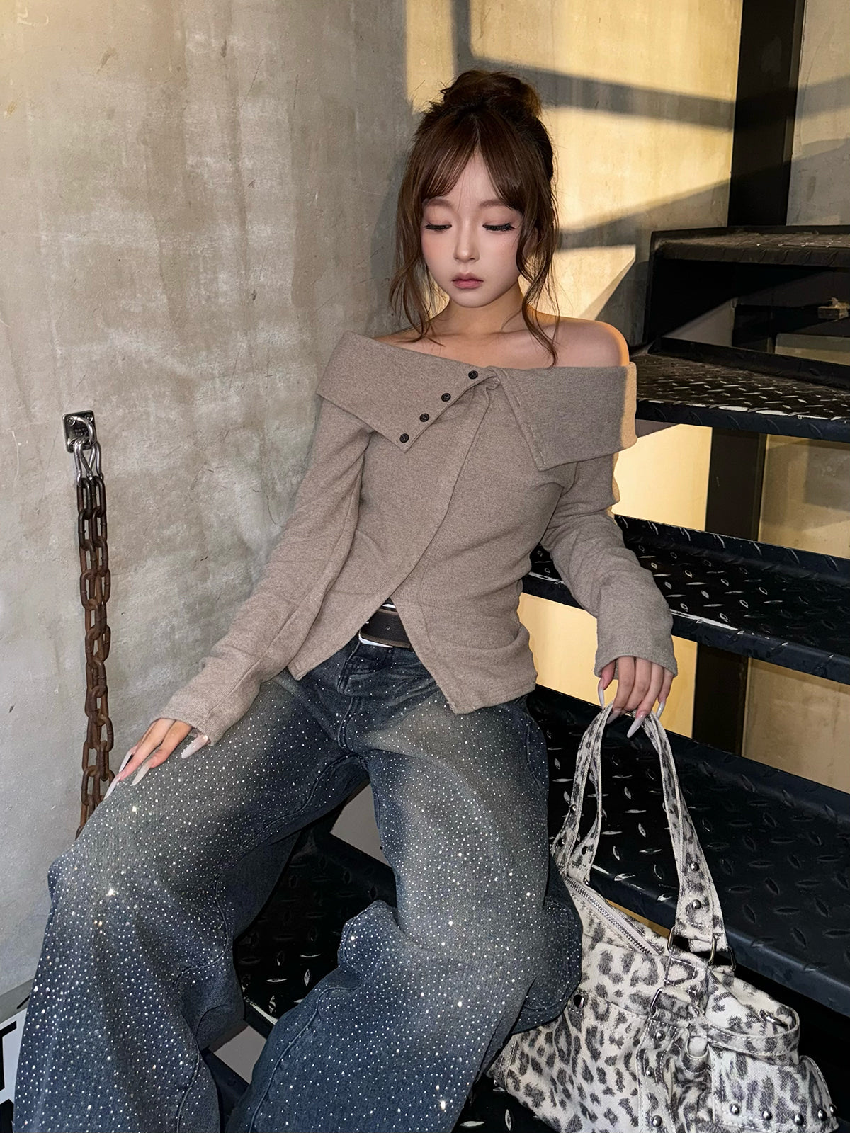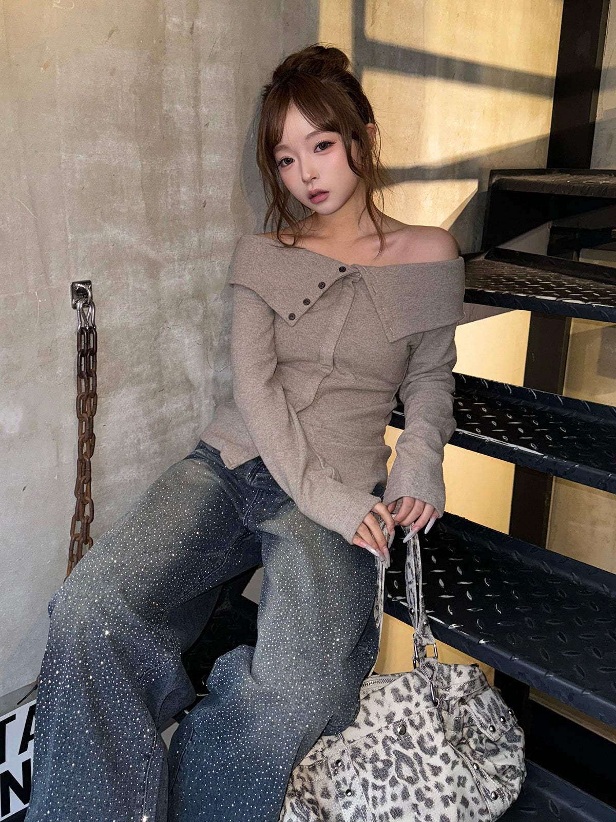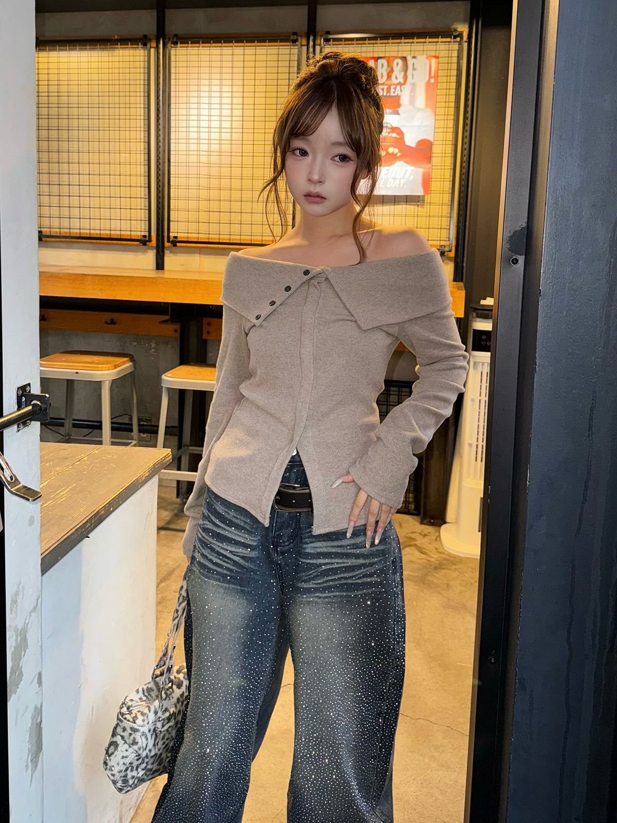 适度露出肩部的露肩设计,打造轻松随性的风格。