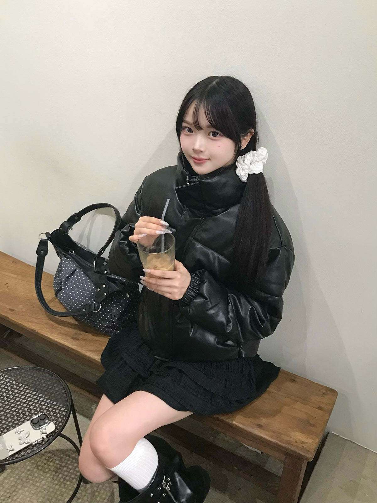皮革触感加厚短款夹克