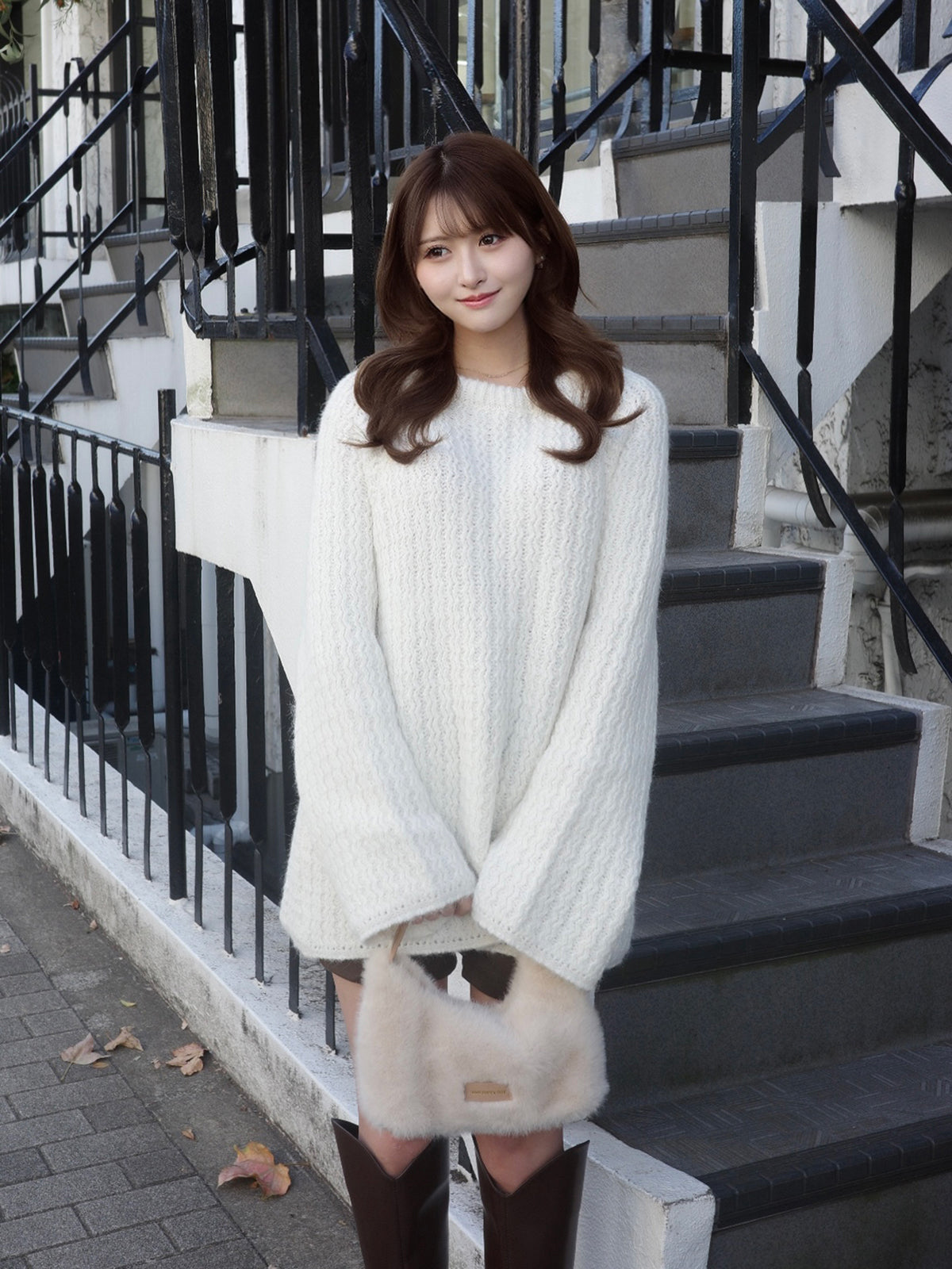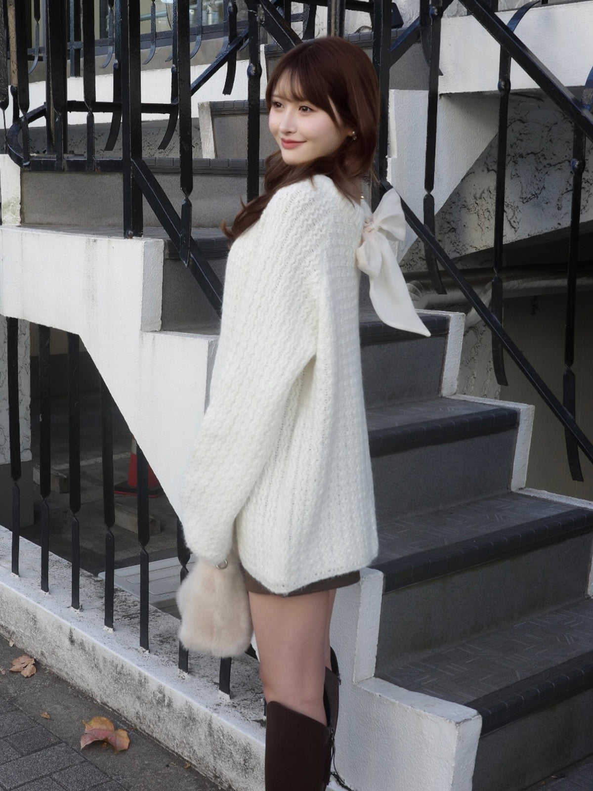 12/11★Size 蕾丝蝴蝶结宽松亮片针织衫