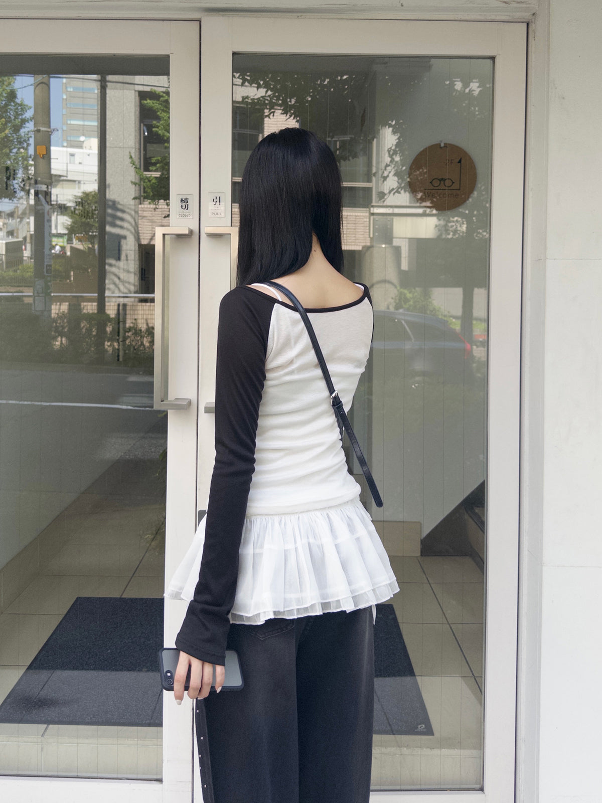 采用轻盈的透视面料制作,插肩袖设计的针织衫。