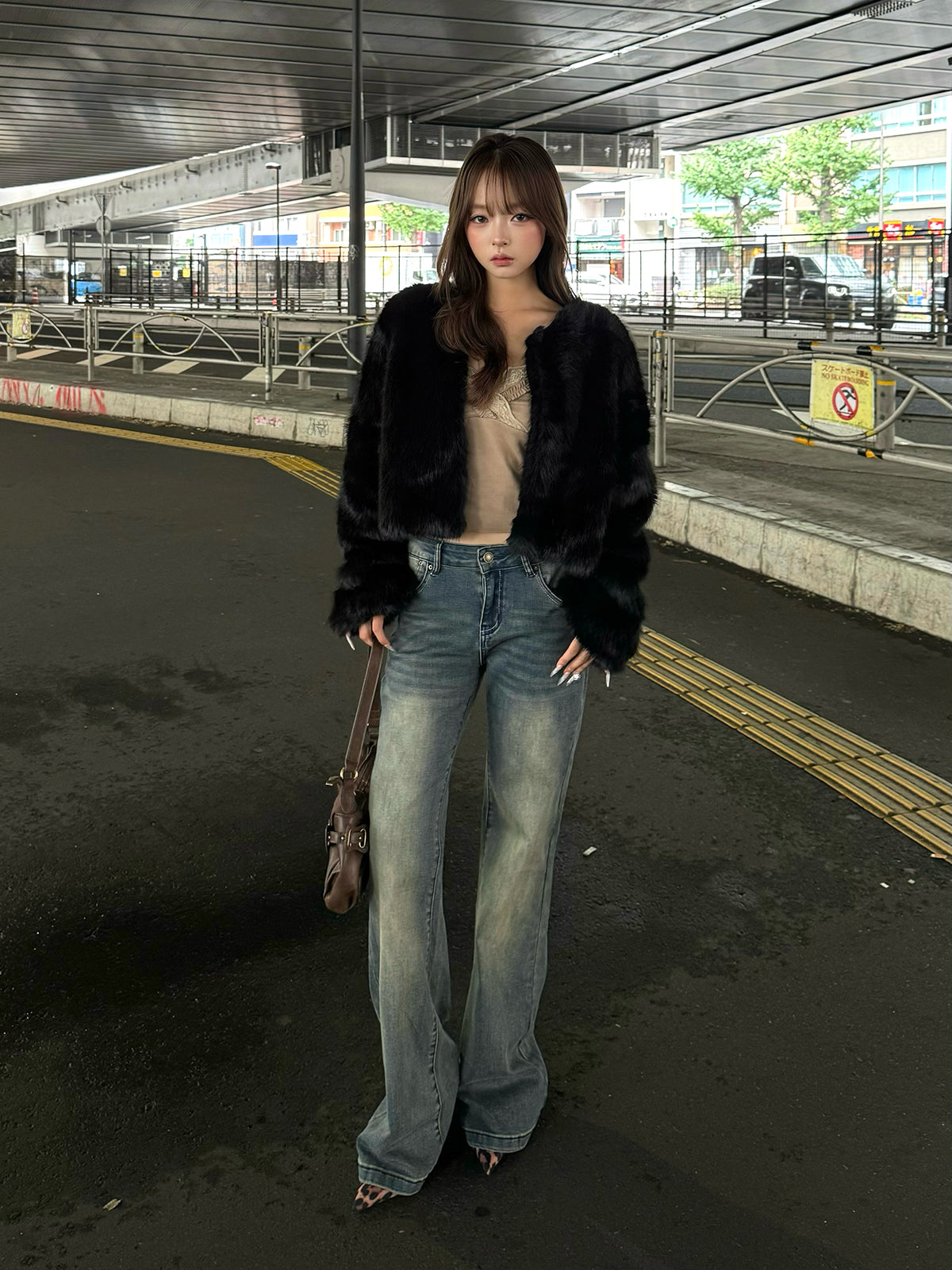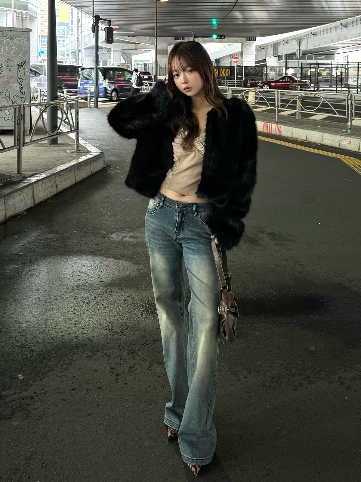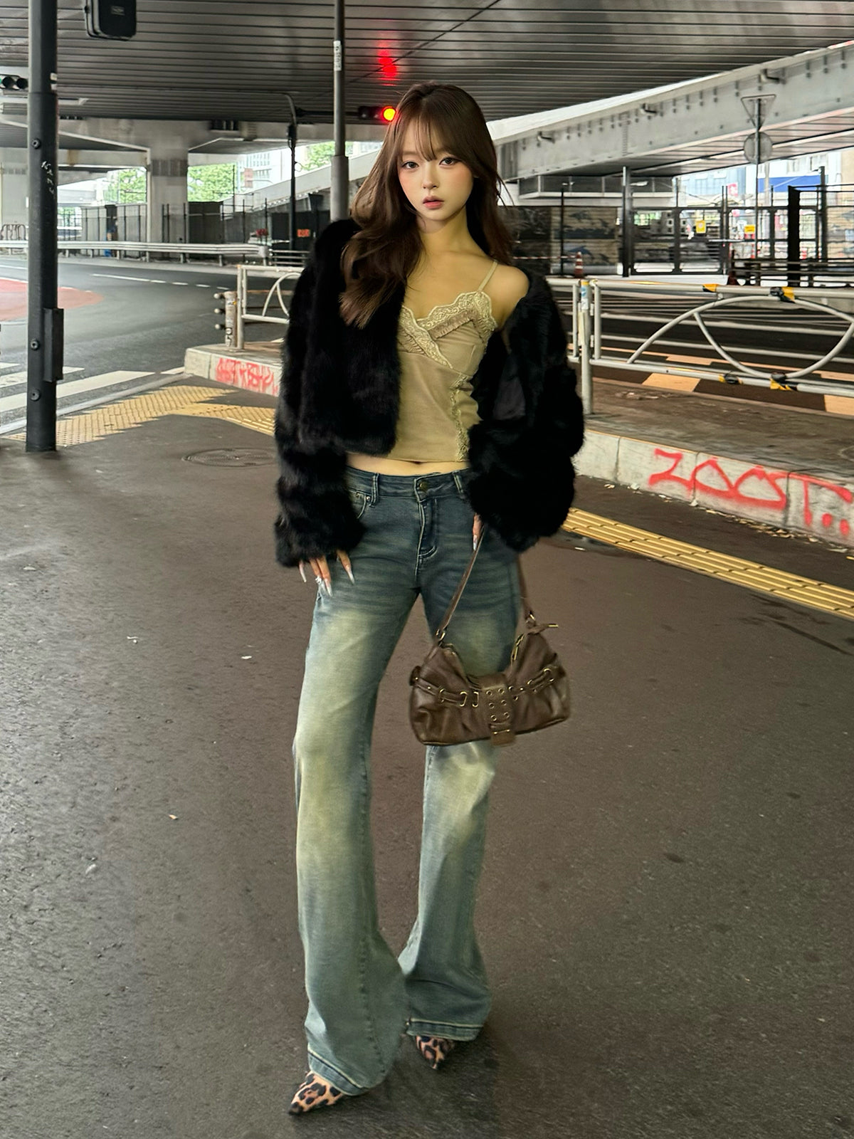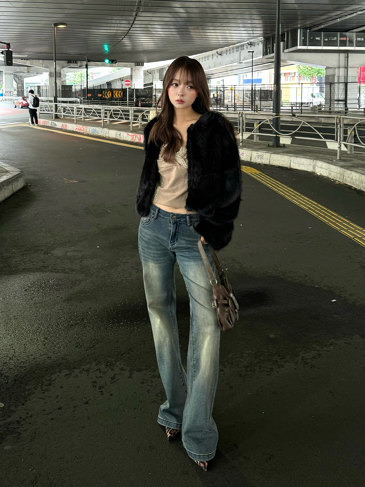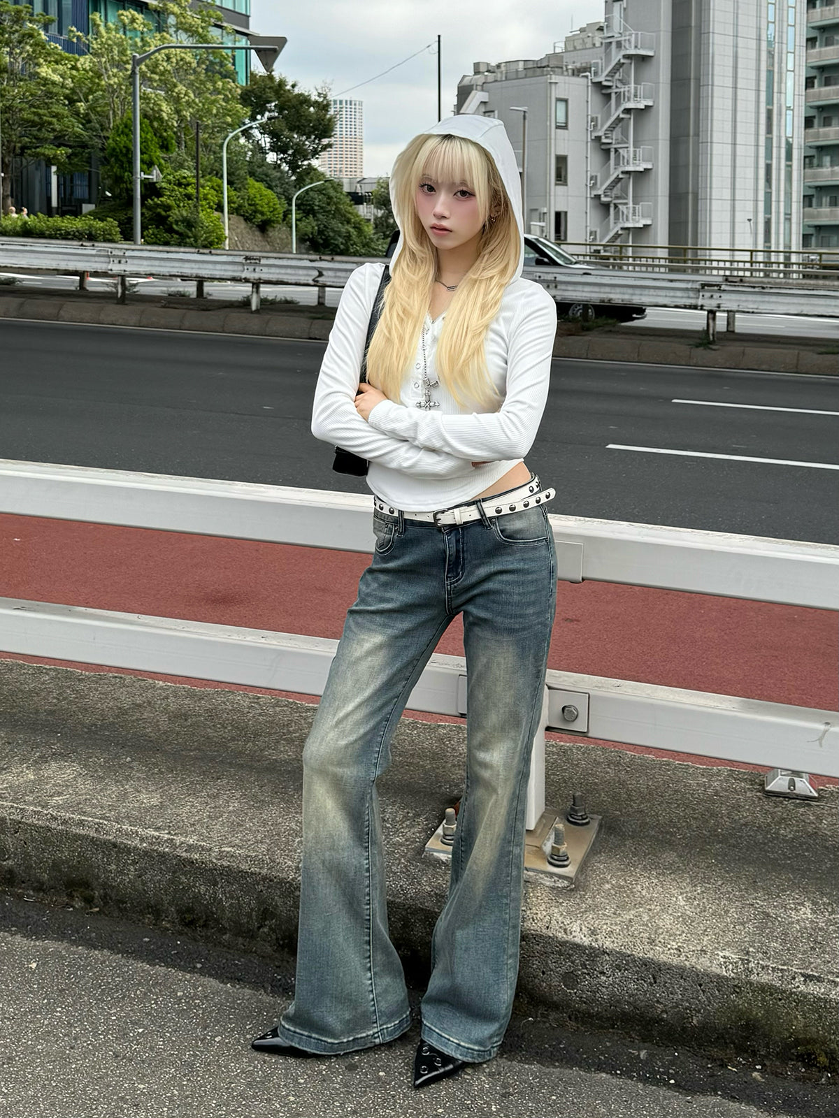 适度的半喇叭廓形让双腿显得修长的牛仔裤。
