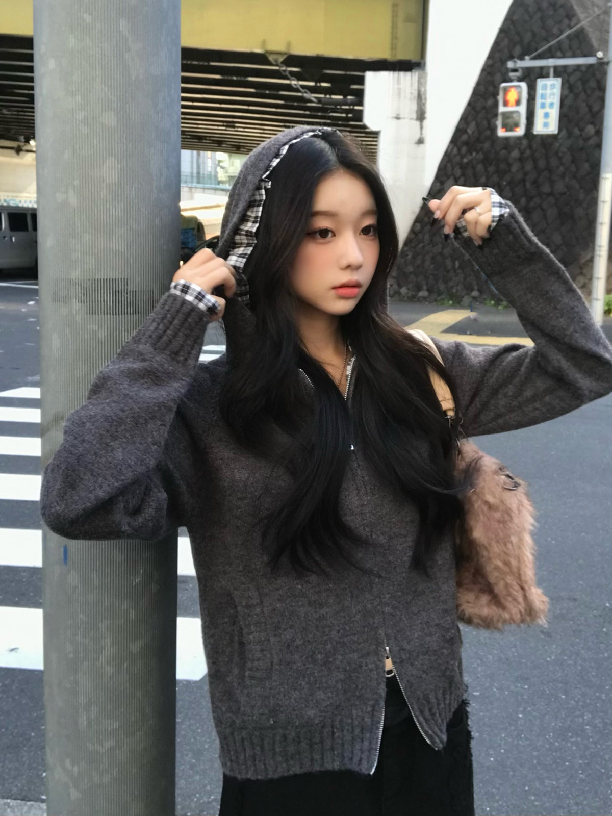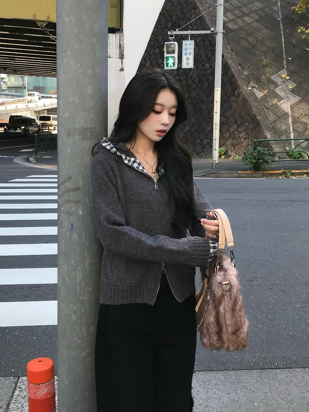 袖はシャツ風のドッキングデザインで、1枚でレイヤード感のあるスタイリングが完成。
