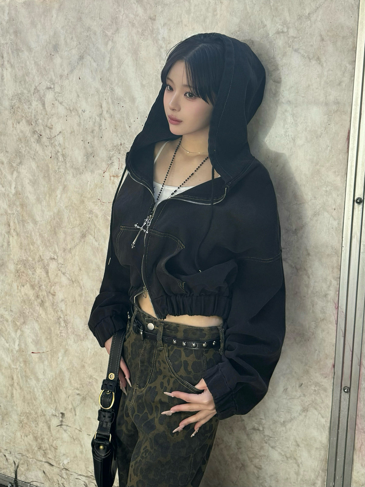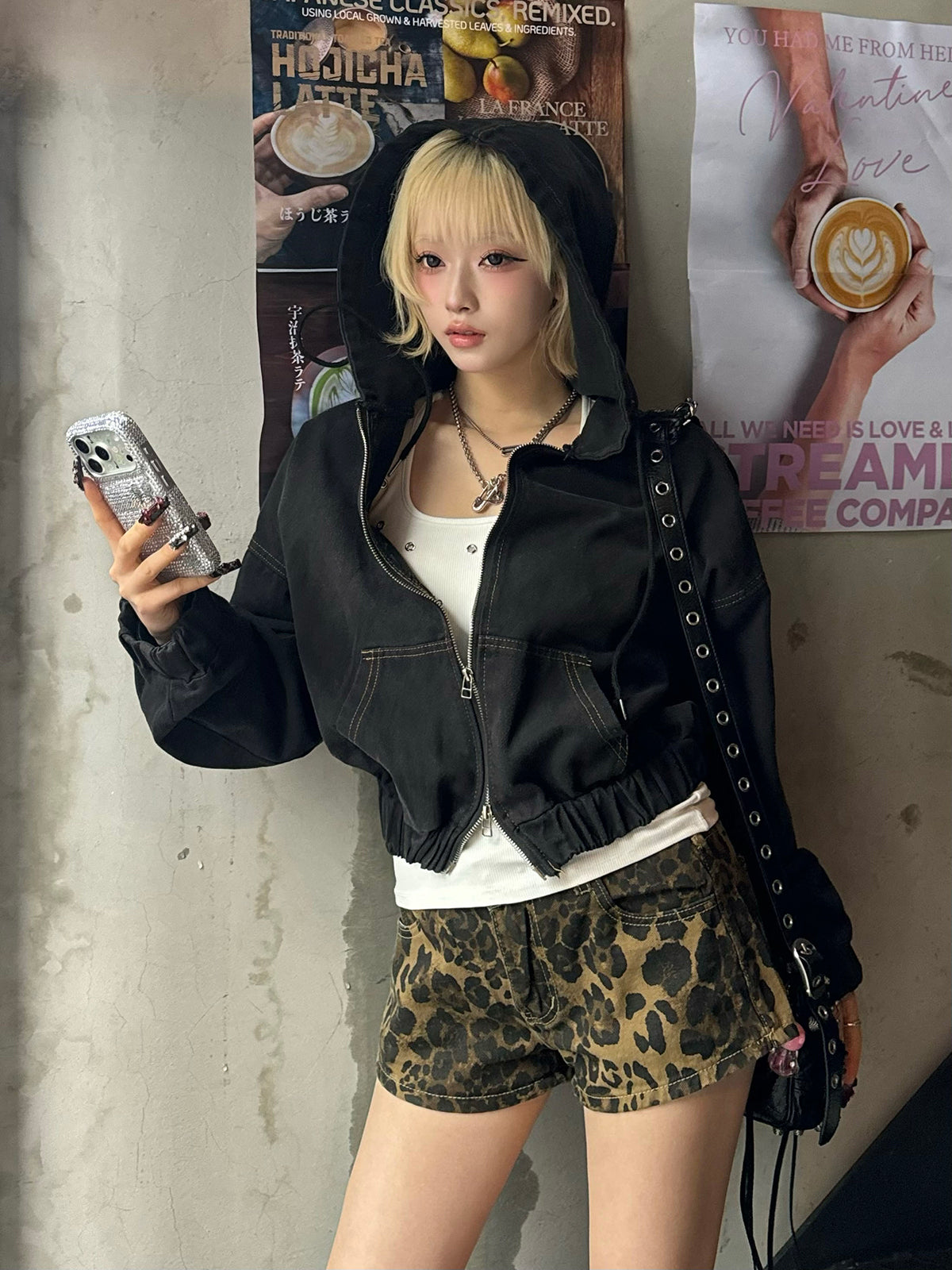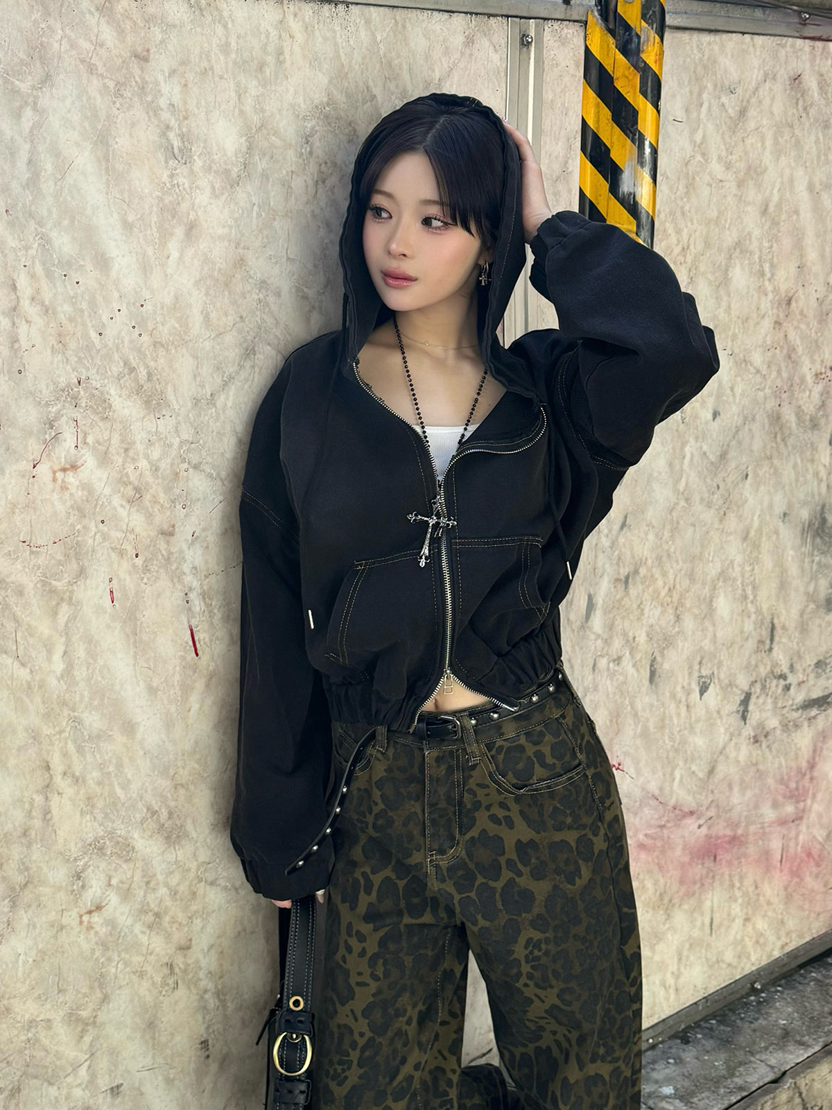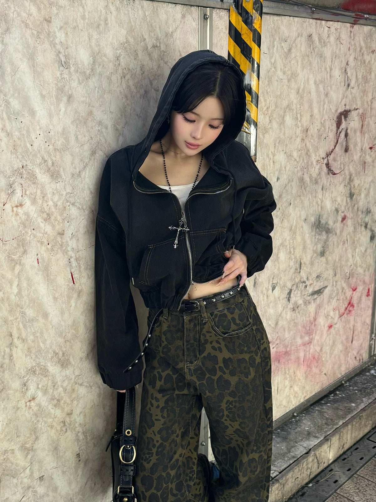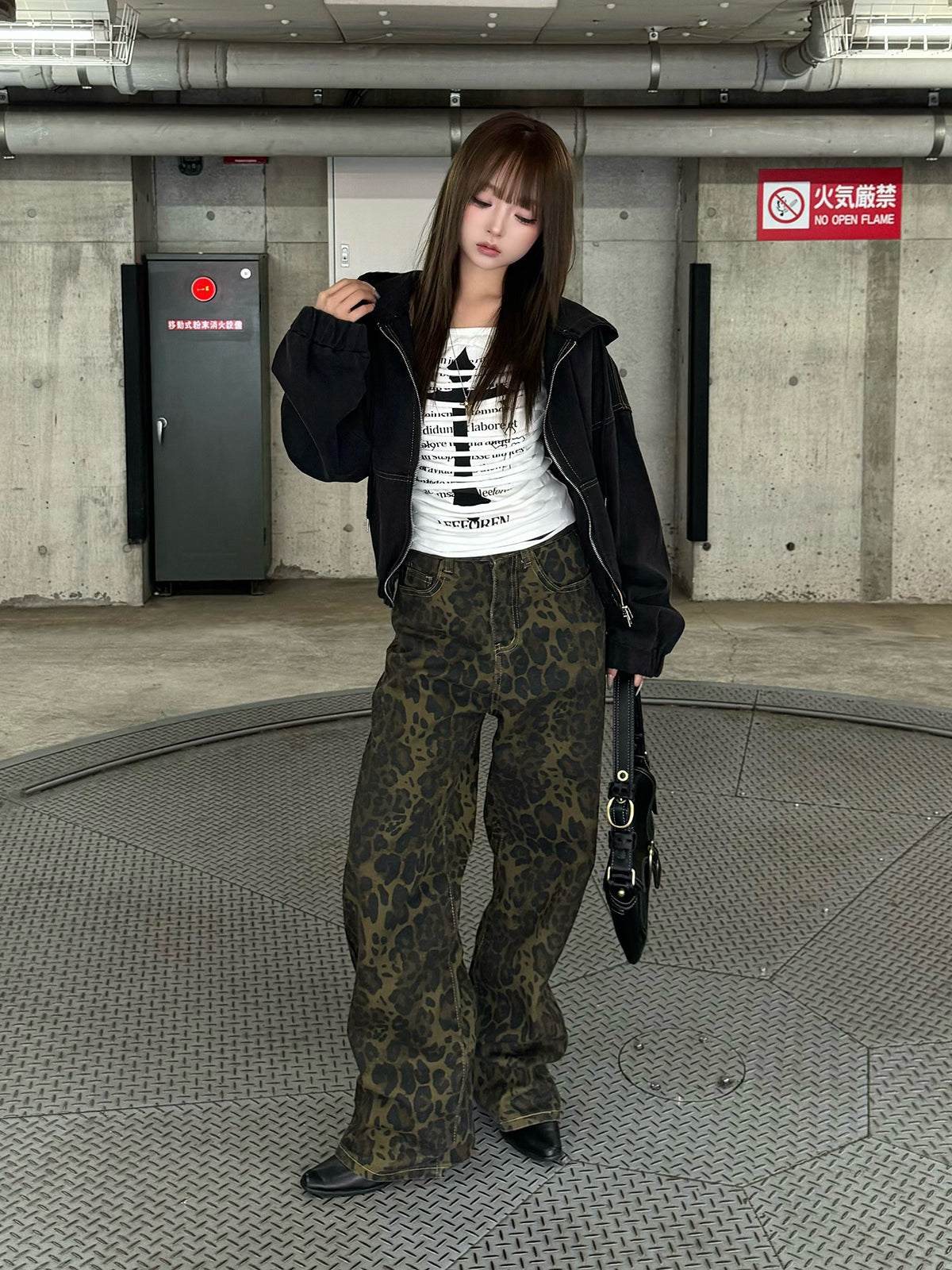 ・レオパードワイドストレートデニムパンツ