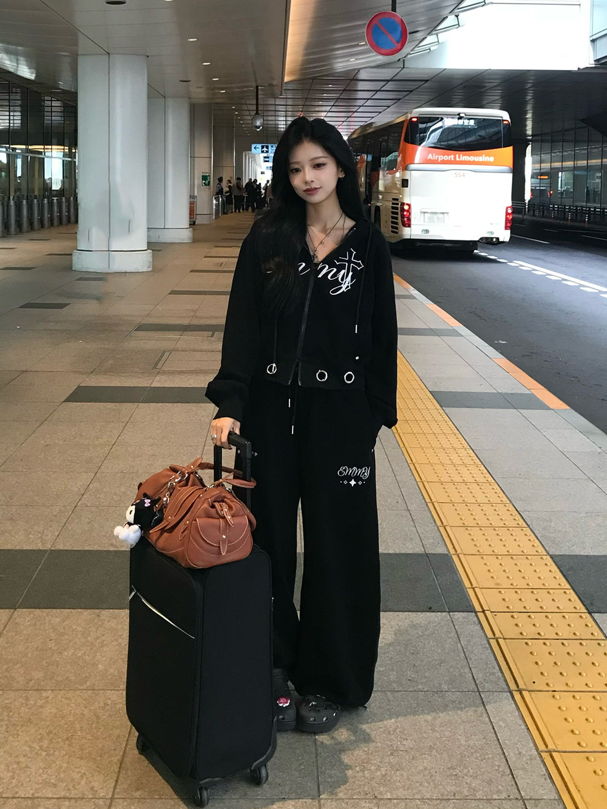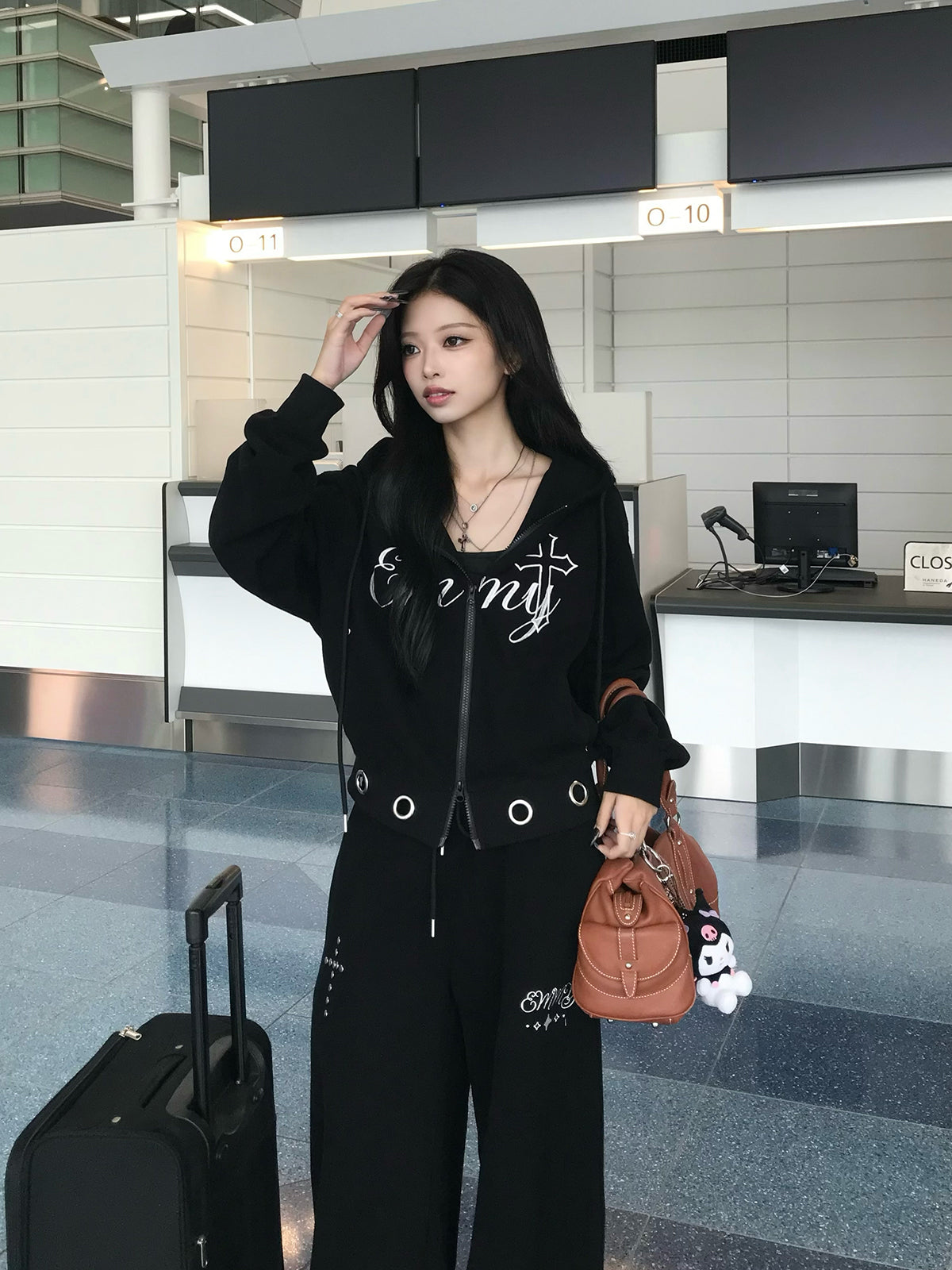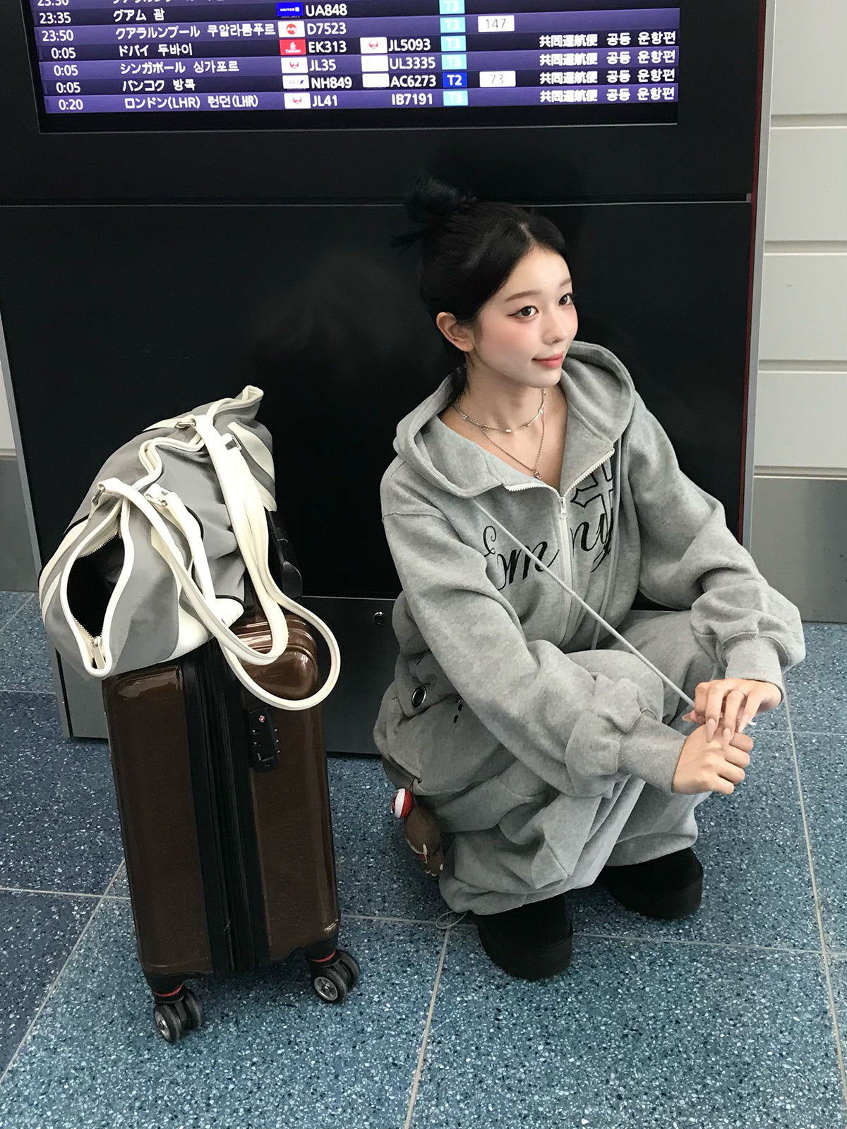 ダブルジップパーカーとパンツのスウェットセットアップ。
